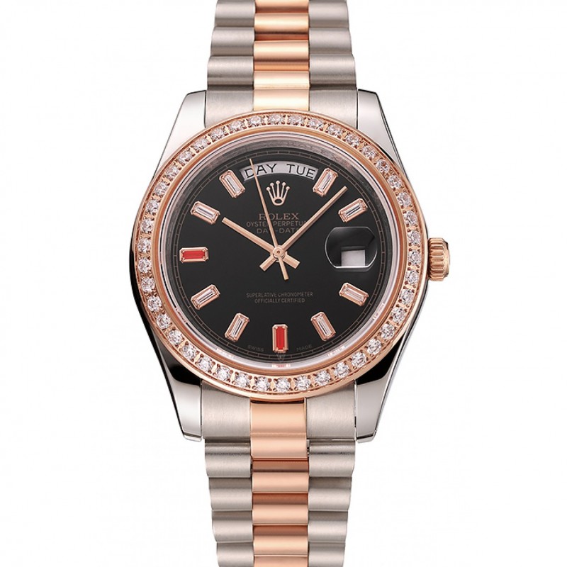Svizzero Rolex Day-Date diamanti e rubini Quadrante Nero Oro Rosa E Staineless bracciale in acciaio 1454106