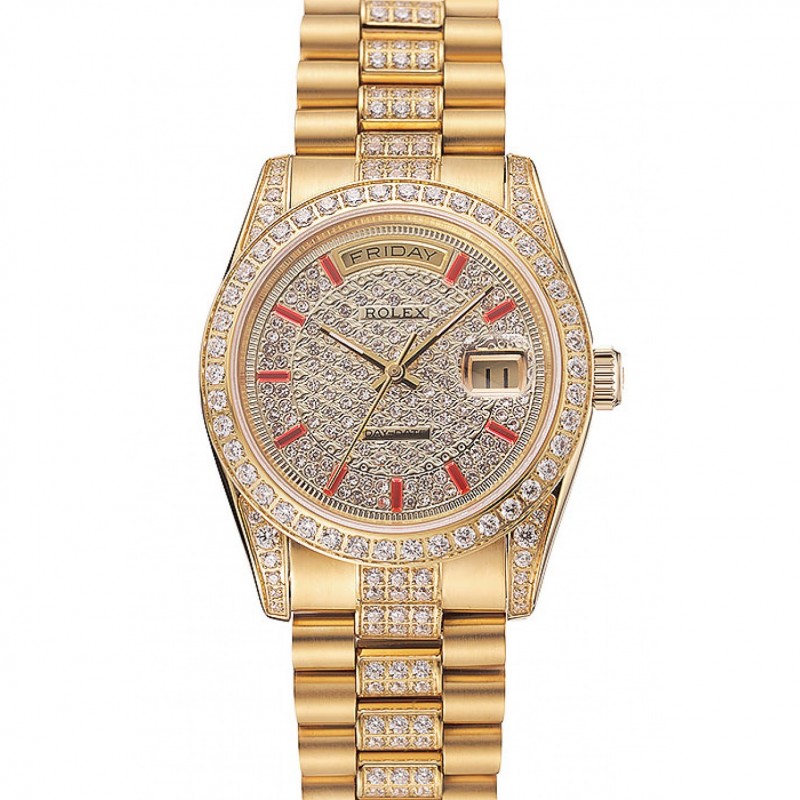AAA Rolex Day-Date Red Diamond Pave quadrante in oro braccialetto di diamanti 1453960