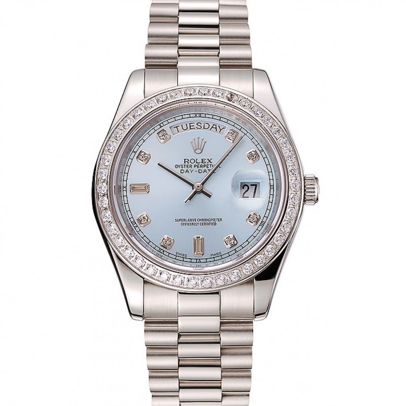Economico Orologi Replica Rolex Day-Date Ice Blue Dial braccialetto di diamanti cassa del diamante Numeri in acciaio inox 1.453.963
