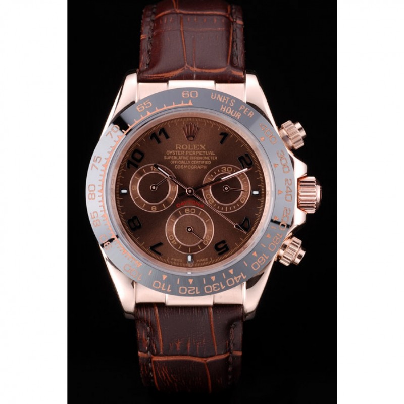 SS Orologi Replica Rolex Daytona cassa in oro rosa Quadrante Marrone cinturino in pelle marrone