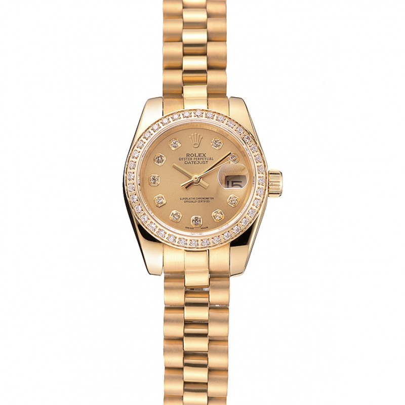 Svizzero Rolex Lady-Datejust Champagne Dial Diamond Bezel Bracciale in oro 1454095