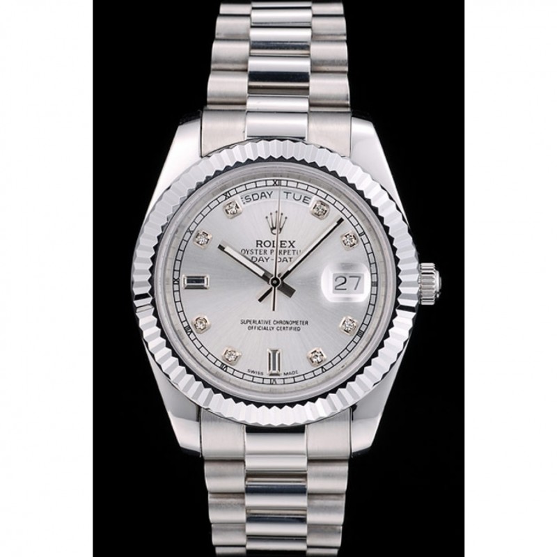 Rolex Day-Date in acciaio inossidabile a coste Lunetta Silver Dial 41976