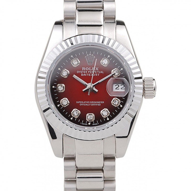 Alta qualità Orologi Replica Rolex Datejust in acciaio inossidabile lucidato Two Tone Red Dial
