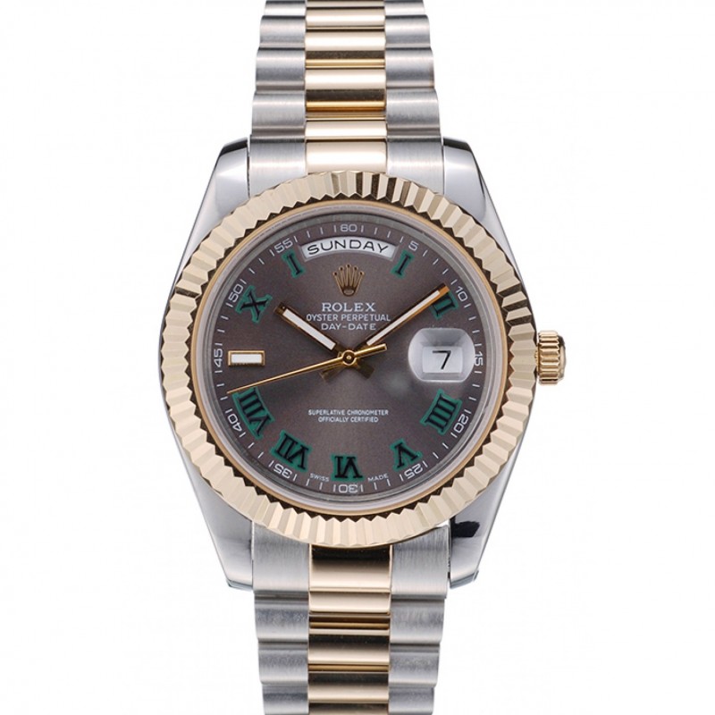 Rolex DayDate svizzero oro in acciaio inox a coste lunetta quadrante grigio 41909