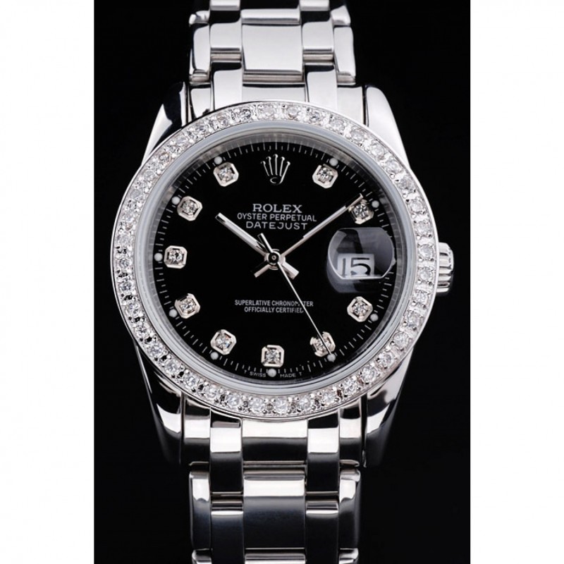 Rolex Datejust quadrante nero Bracciale in acciaio inox Diamond Bezel