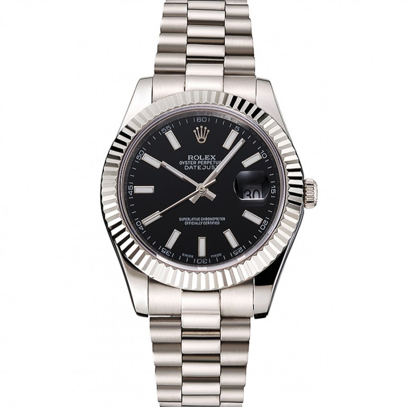 AAA Orologi Replica Rolex Datejust quadrante nero cassa in acciaio e bracciale
