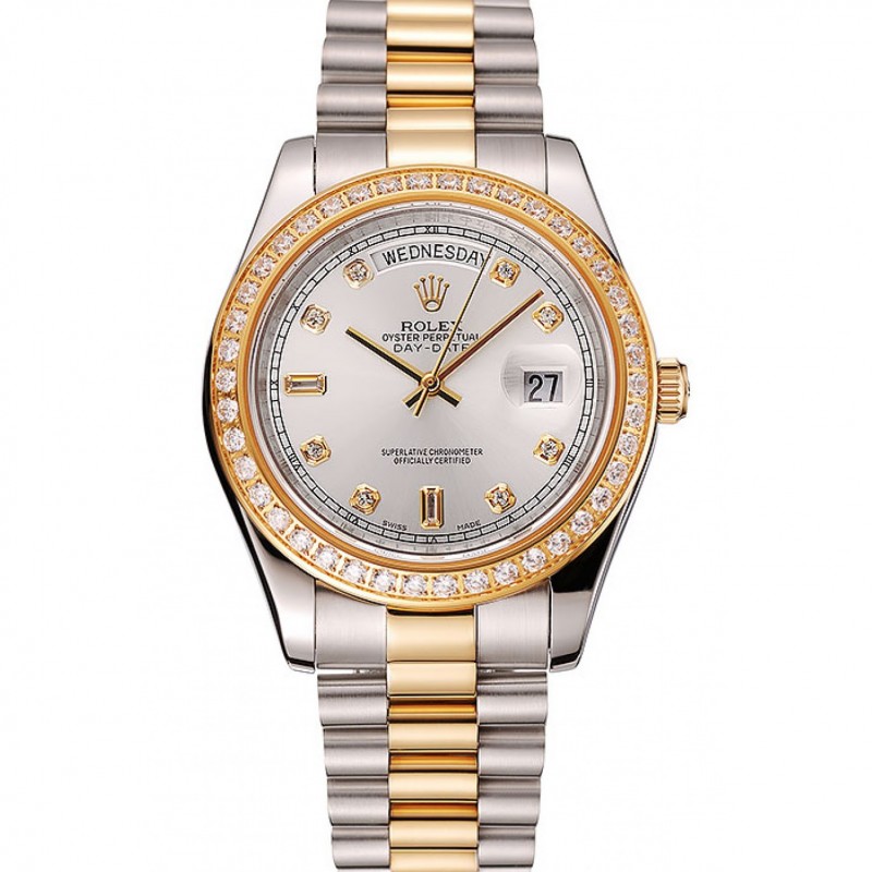 Rolex Day-Date Svizzero quadrante bianco cassa del diamante in oro due toni Bracciale in acciaio inossidabile 1453972