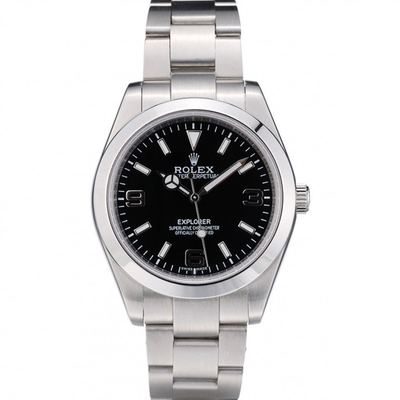 Eccellente Orologi Replica Rolex Explorer svizzero lunetta in acciaio inossidabile quadrante nero 42002