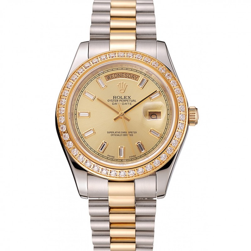 Lusso Rolex Day-Date Quadrante Champagne Diamond Bezel due braccialetto Tone 1454103