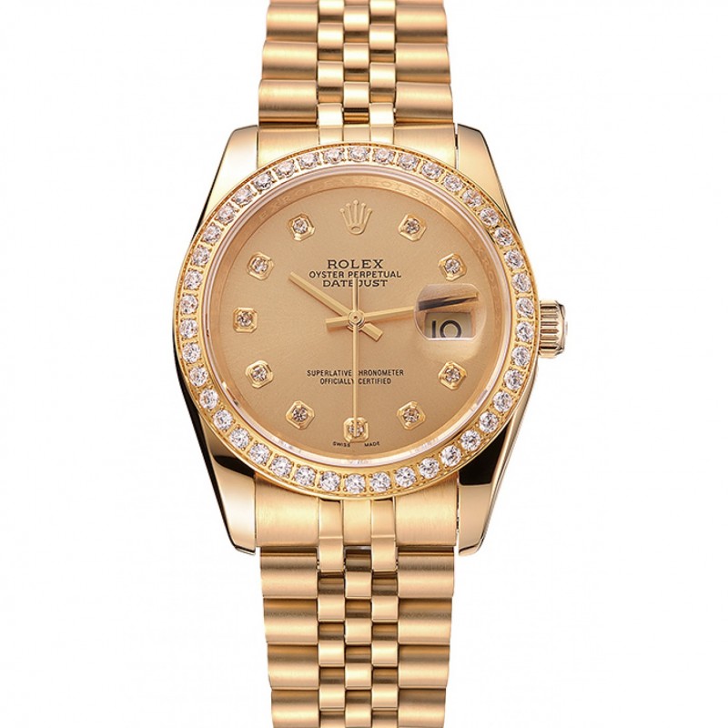 Svizzero Rolex Datejust Champagne Diamond Dial lunetta in oro bracciale Jubilee 1454098