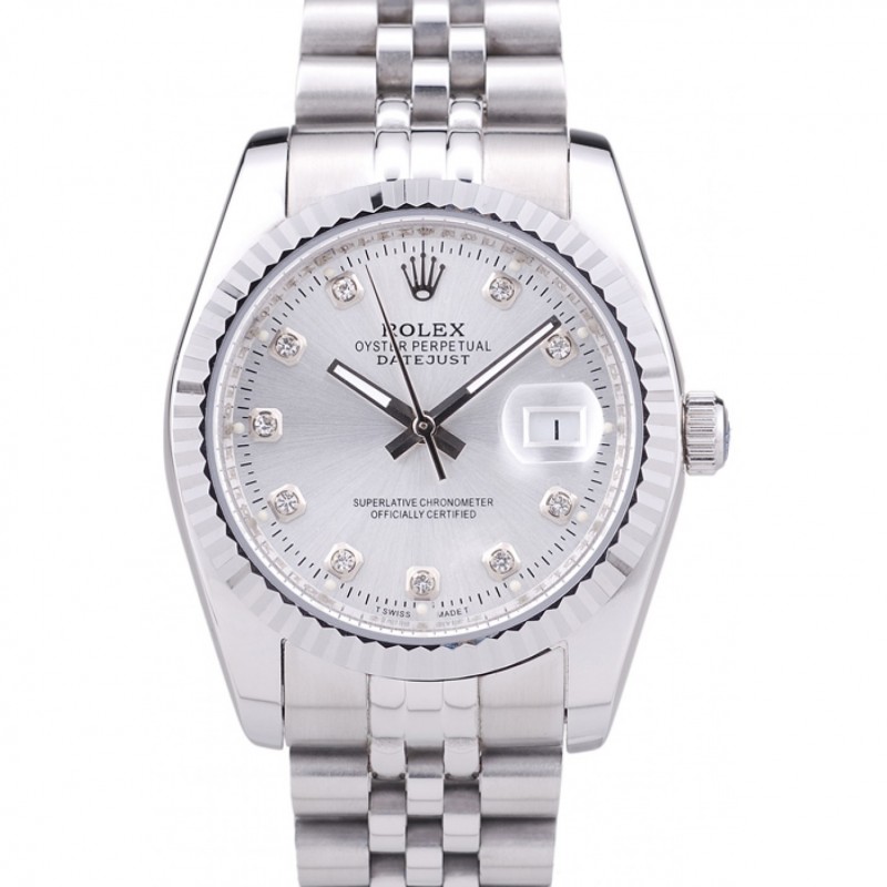 Economico Orologi Replica Rolex Datejust Argento diamanti Quadrante costine lunetta 7455