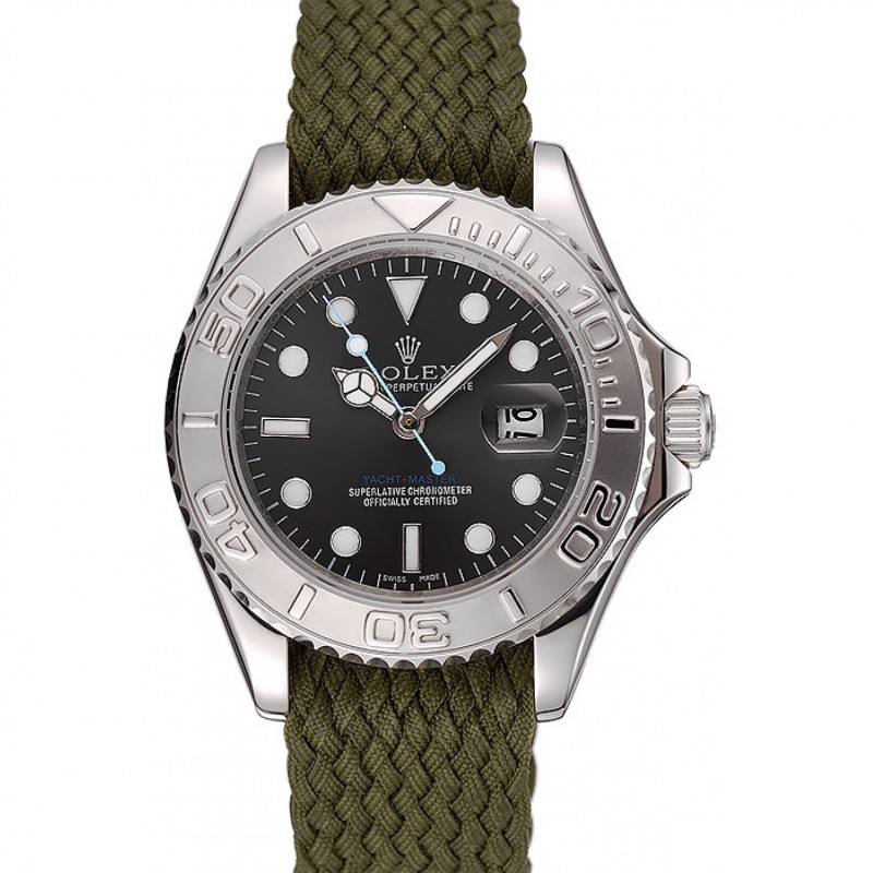 Rolex Yacht Master Verde Quadrante Verde Tessuto Bracciale 1453869