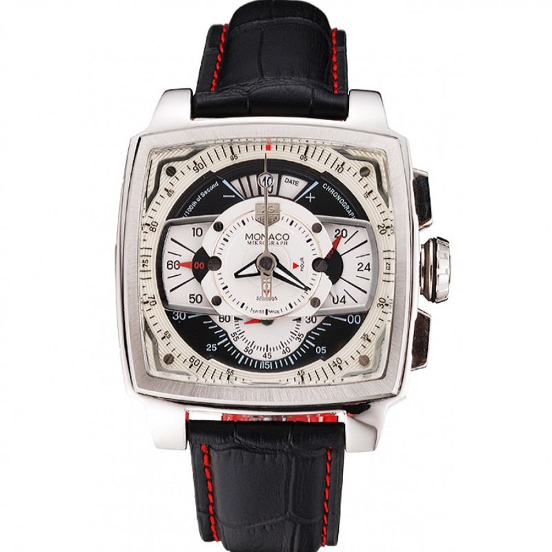SS Orologi Replica Tag Heuer Monaco Nero-Rosso perforato Cinturino in pelle Quadrante nero 80309