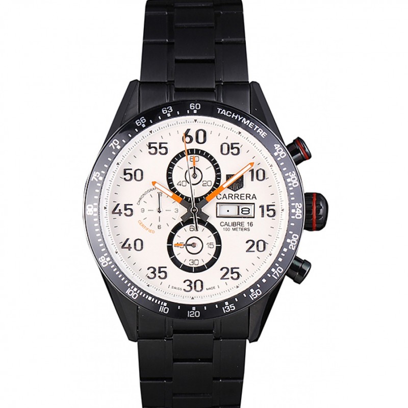 SS Orologi Replica TAG Heuer Carrera Nero Cassa in acciaio quadrante bianco 98.246