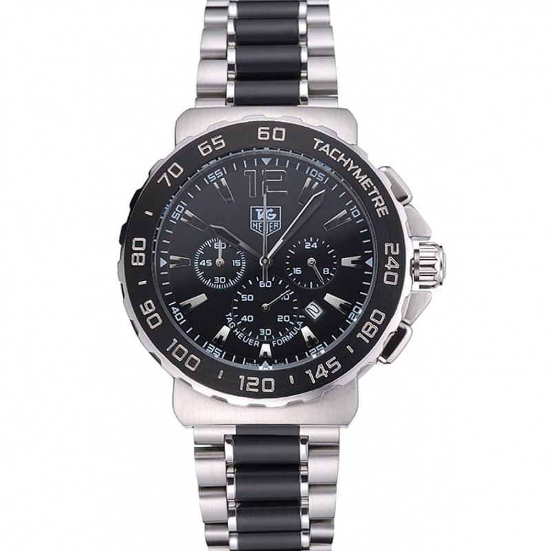 AAA Tag Heuer Formula 1 cronografo quadrante nero nero Lunetta Two Tone Stainless Steel Band 622.412