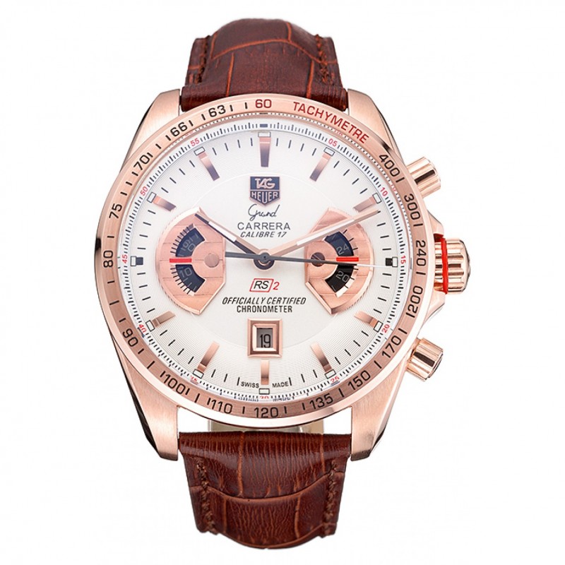 Tag Heuer Carrera cassa in oro rosa quadrante bianco in pelle marrone 98245 Strap