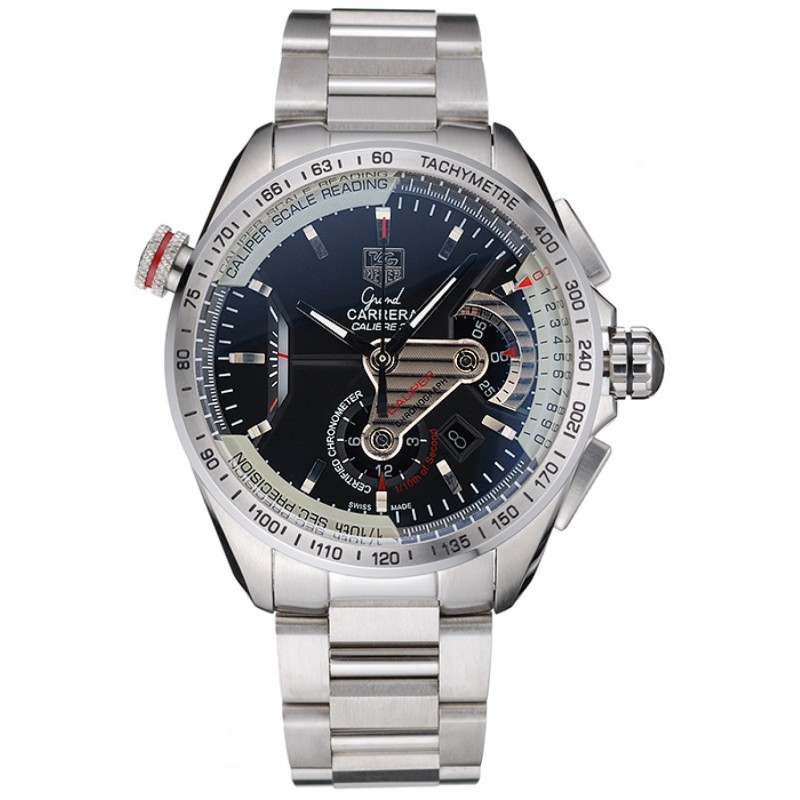 SS Tag Heuer Carrera svizzero tachimetrica Lunetta in acciaio inossidabile quadrante nero