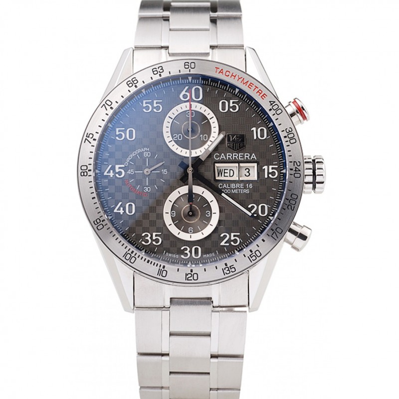 Tag Heuer Carrera svizzero tachimetrica Lunetta in acciaio inox a scacchi Brown Dial