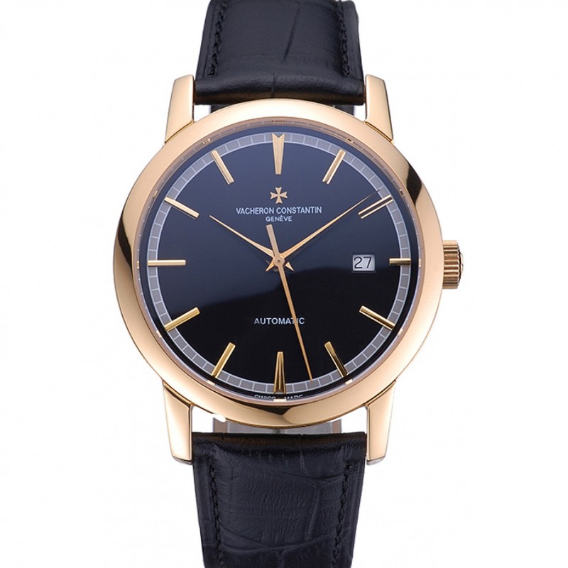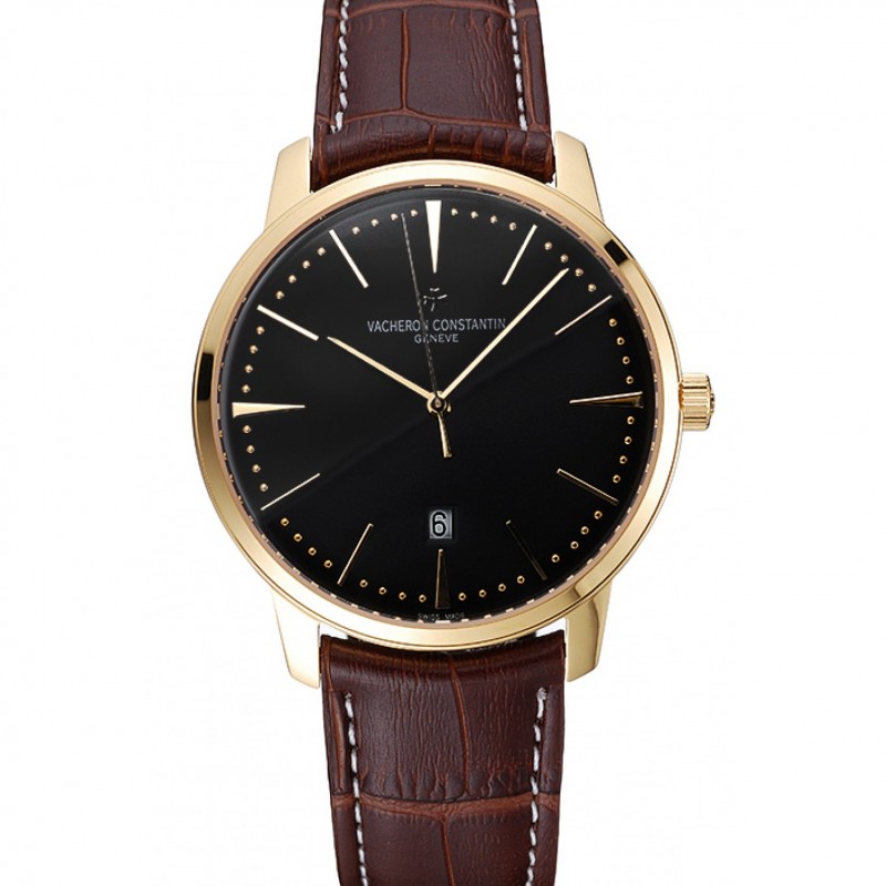 Migliore Svizzero Vacheron Constantin Patrimony quadrante nero in pelle oro bracciale Caso Brown 1454179