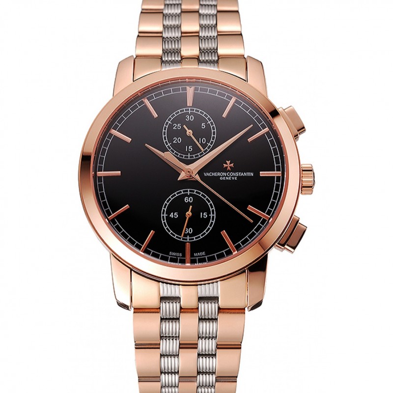 Svizzero Vacheron Constantin Patrimony Traditionnelle Cronografo quadrante nero cassa in oro rosa due braccialetto Tone 1453758