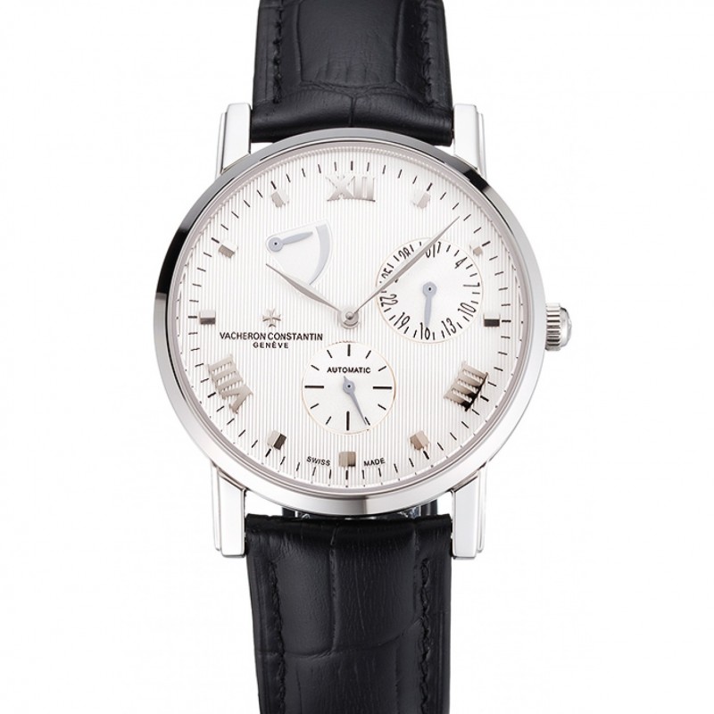 Migliore Svizzero Vacheron Constantin Patrimony Quantieme Reserve de Marche quadrante bianco Cassa in acciaio nero cinturino in pelle