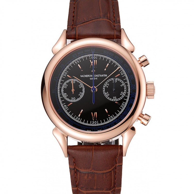 Svizzero Vacheron Constantin Cronografo Traditionnelle quadrante nero in pelle oro bracciale Caso Brown 1453995