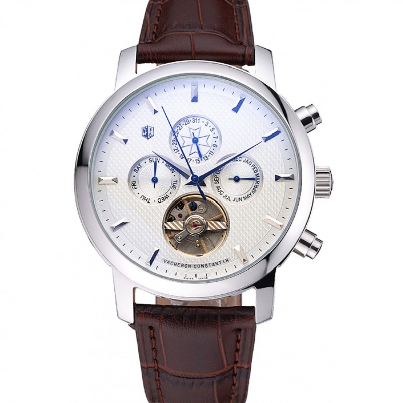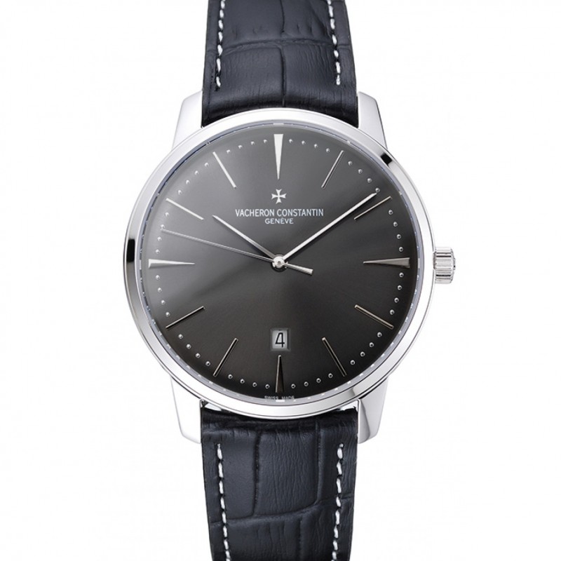 Alta qualità Orologi Replica Svizzero Vacheron Constantin Patrimony quadrante grigio il braccialetto di cuoio d’argento nero della cassa 1454160