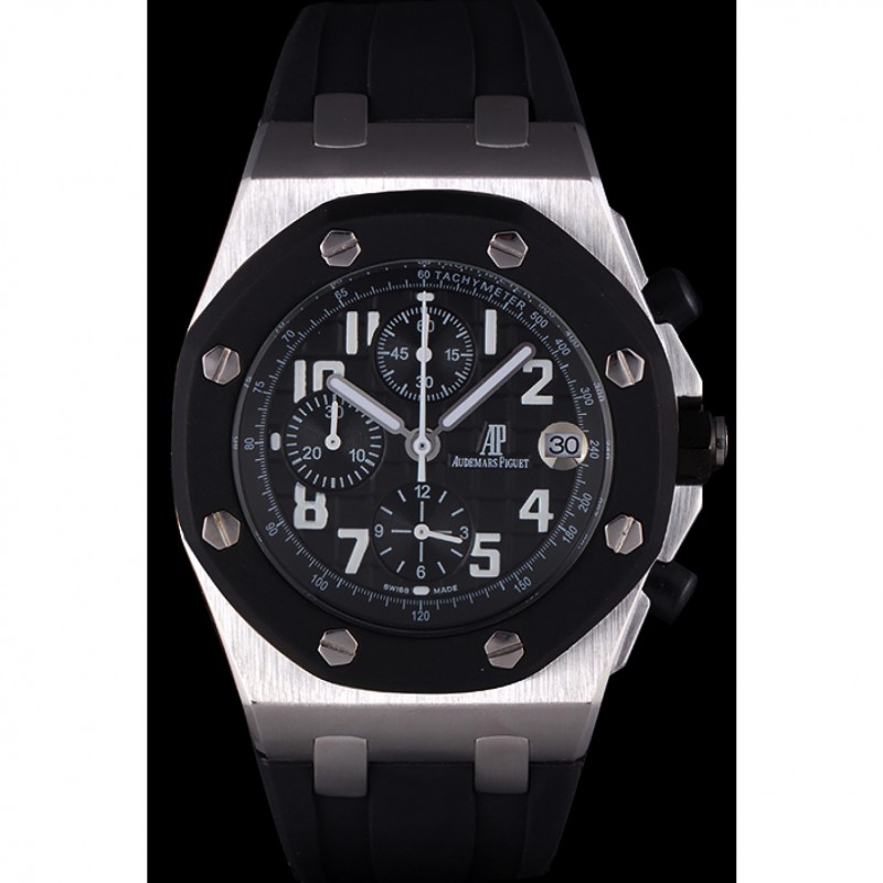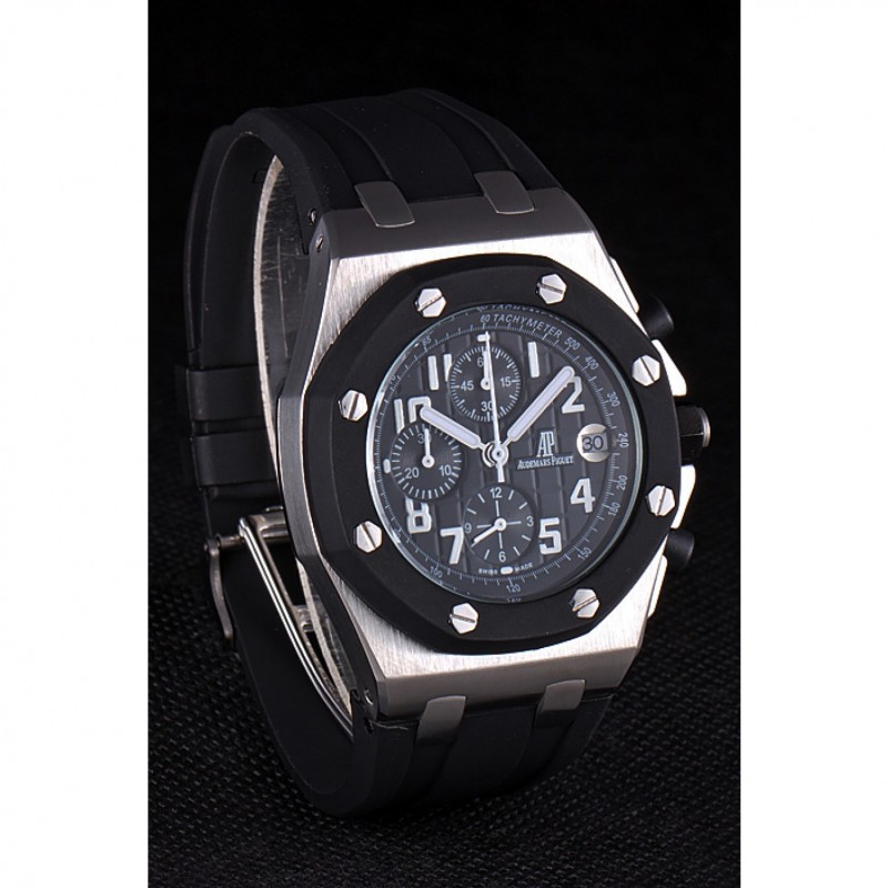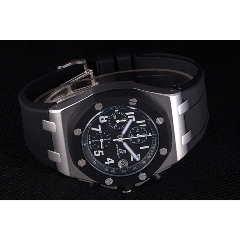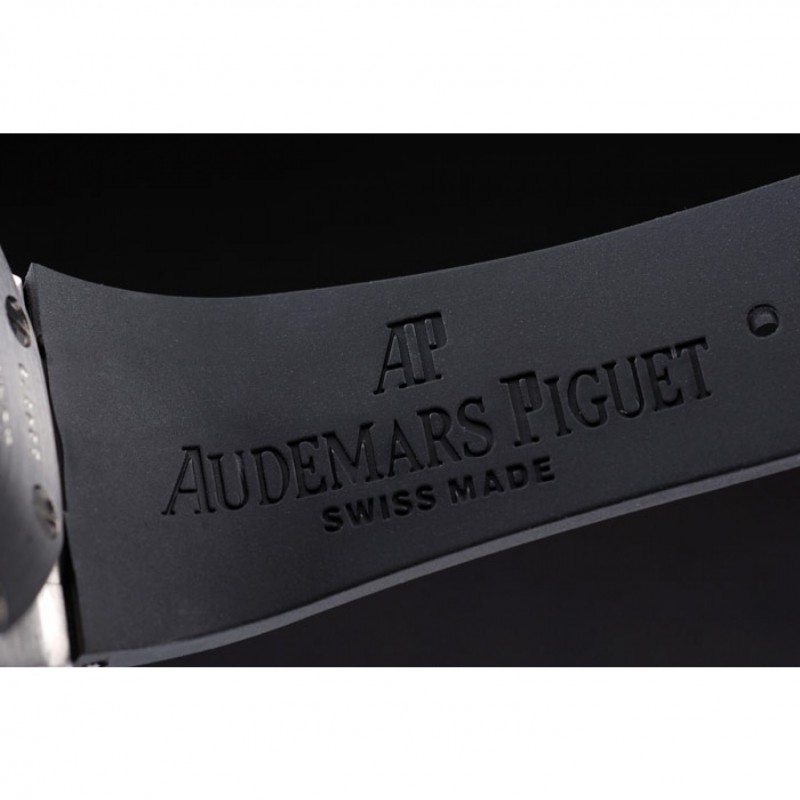 Bracciale: Audemars Piguet e goffrato cinturino in caucciù nero logo di calore con Audemar Piguet inscritto acciaio inossidabile spazzolato fold-in chiusura
