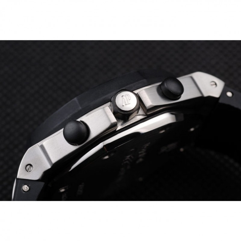 Crown: Audemars Piguet logo inciso ione-placcato corona esagonale con una piccola rotonda pulsante corona su entrambi i lati di esso