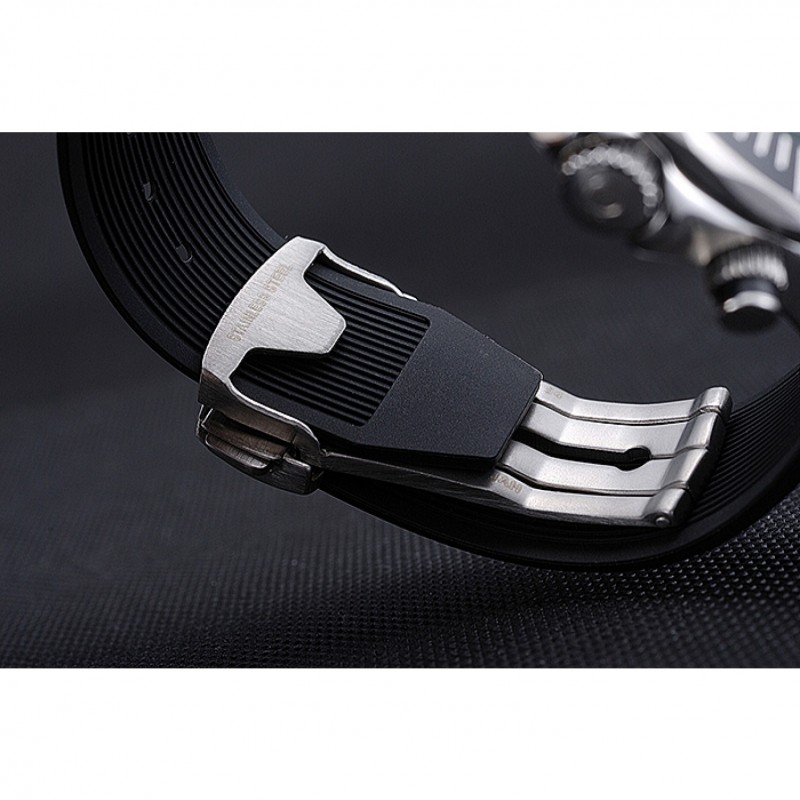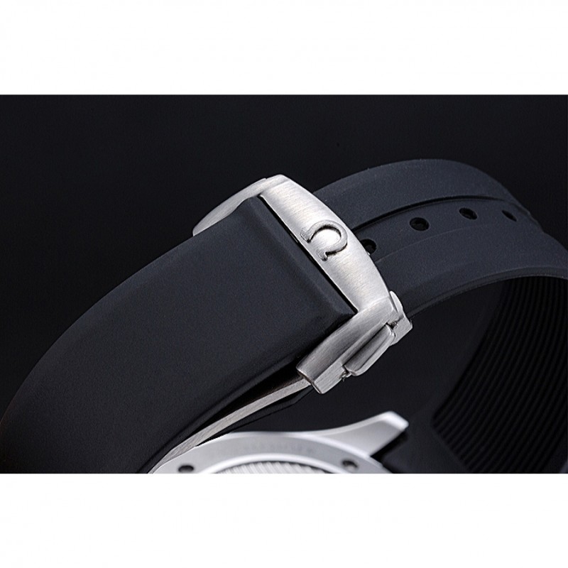 braccialetto: cinturino in gomma nera calore Omega goffrato con Omega logo inciso armadio a gancio chiusura push-rilascio acciaio inox satinato