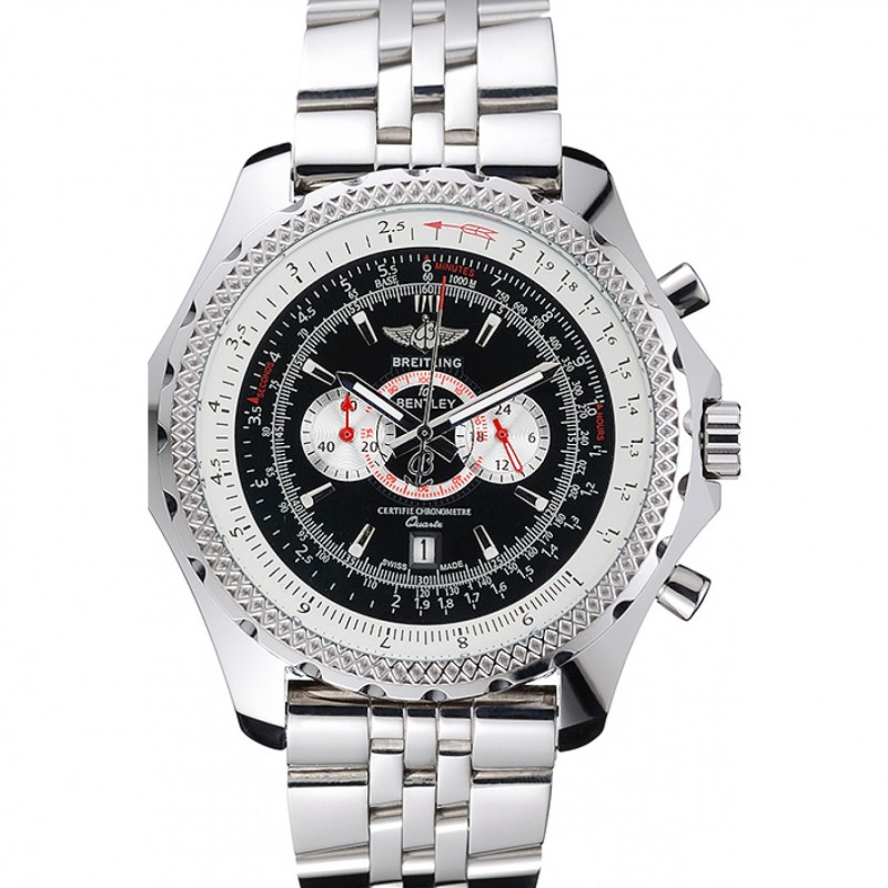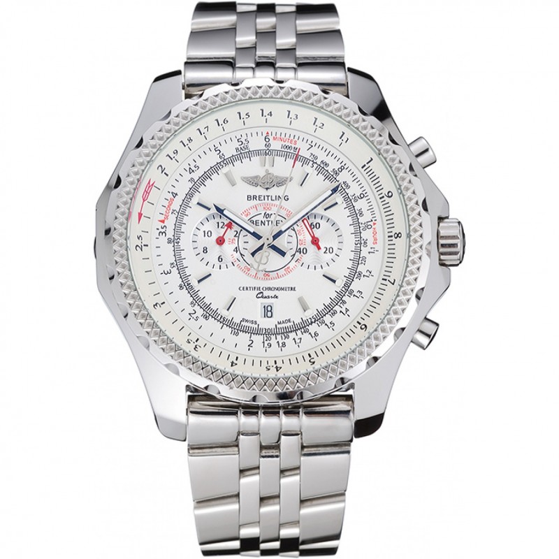 Corona: Breitling logo inciso lucido corona intaglio in acciaio inox con una piccola rotonda pulsante corona su entrambi i lati