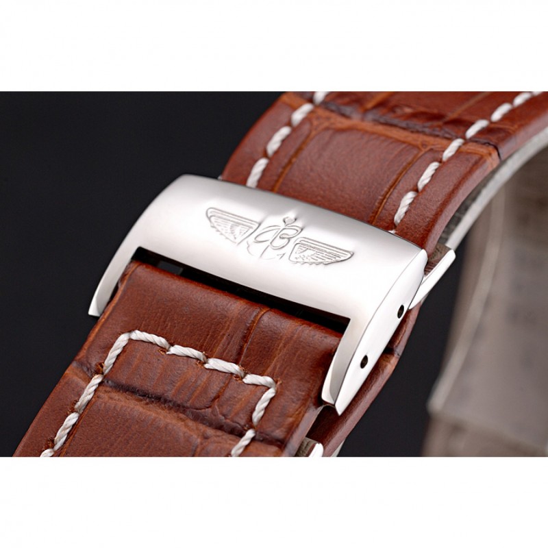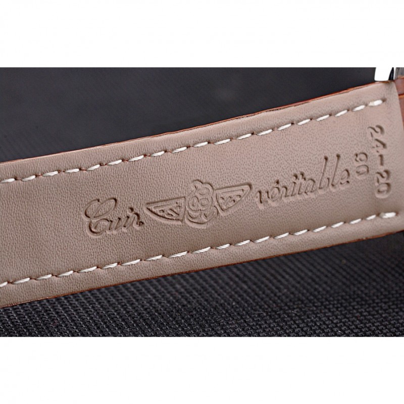Bracciale: Cuir vero e proprio e il logo di calore rilievo cinturino in pelle di coccodrillo marrone con cuciture bianche filo e Breitling logo inciso in acciaio inox lucido fold-in chiusura