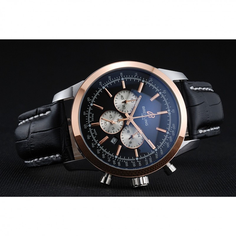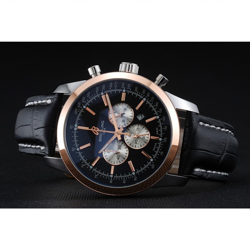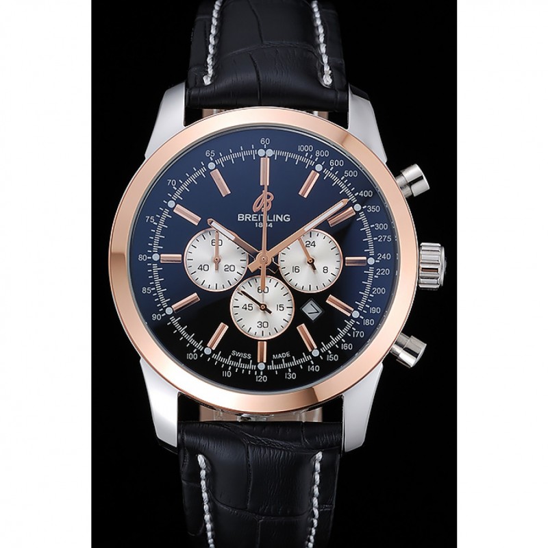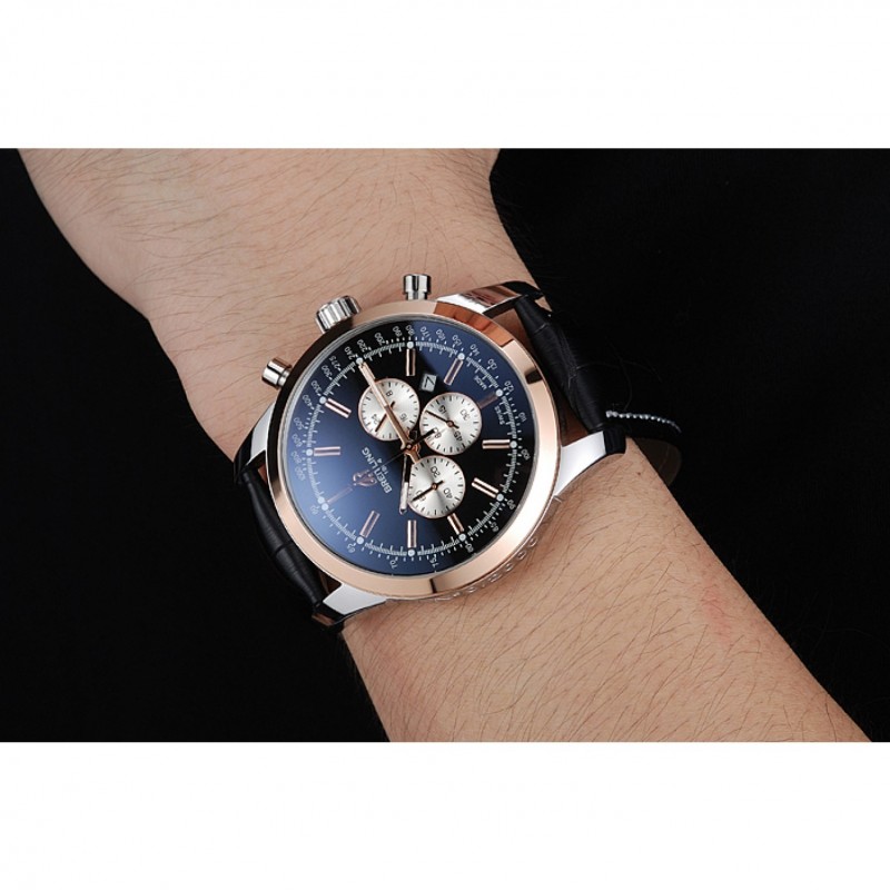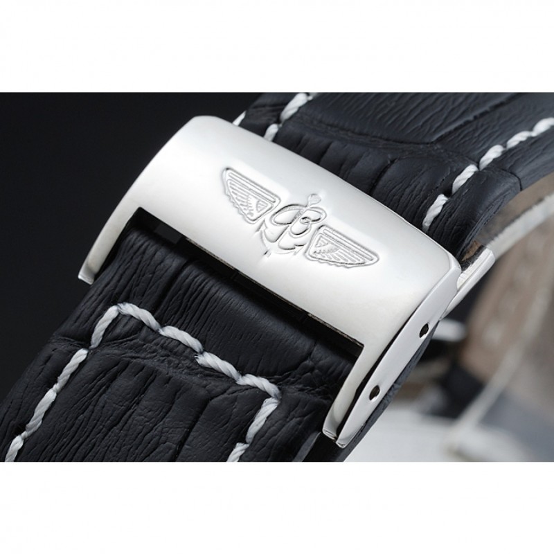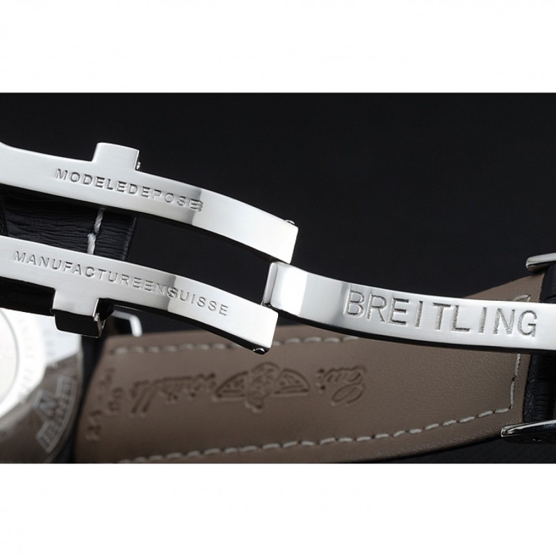 Bracciale: calore goffrato Breitling coccodrillo nero cinturino in pelle con cuciture bianche filo e un logo Breitling inciso fold-in fibbia in acciaio inox