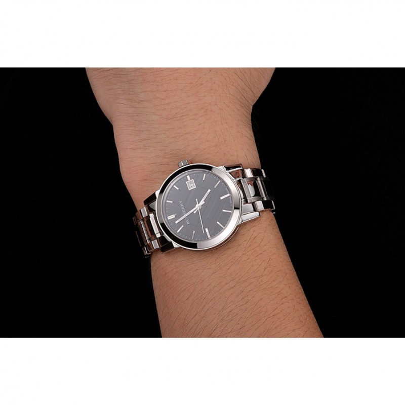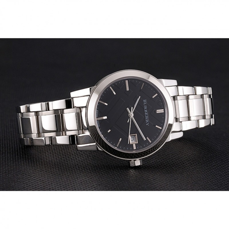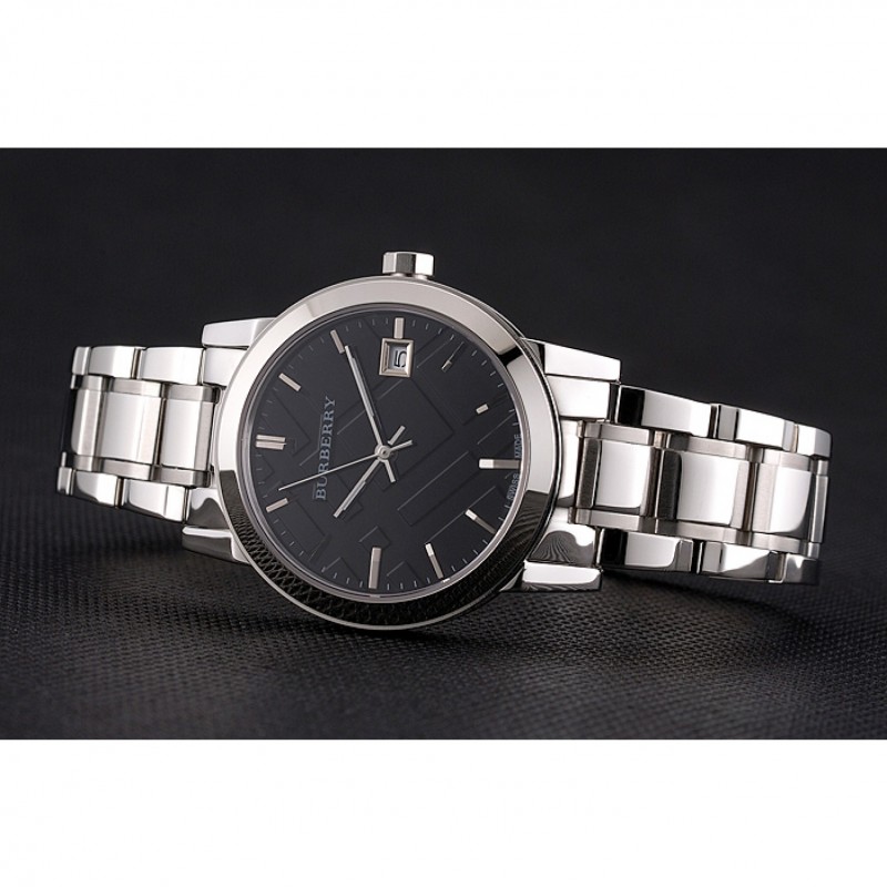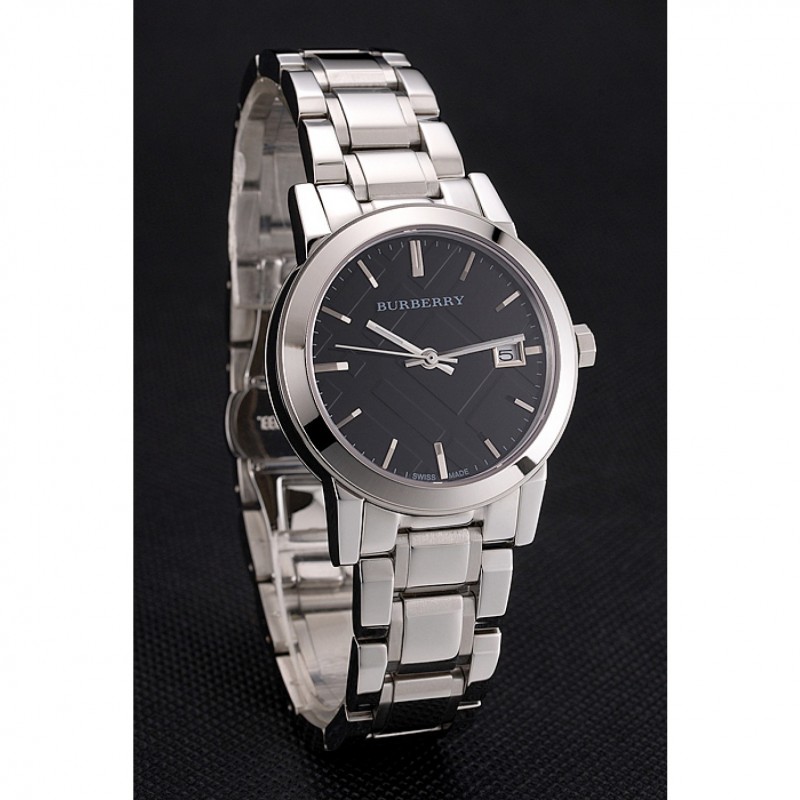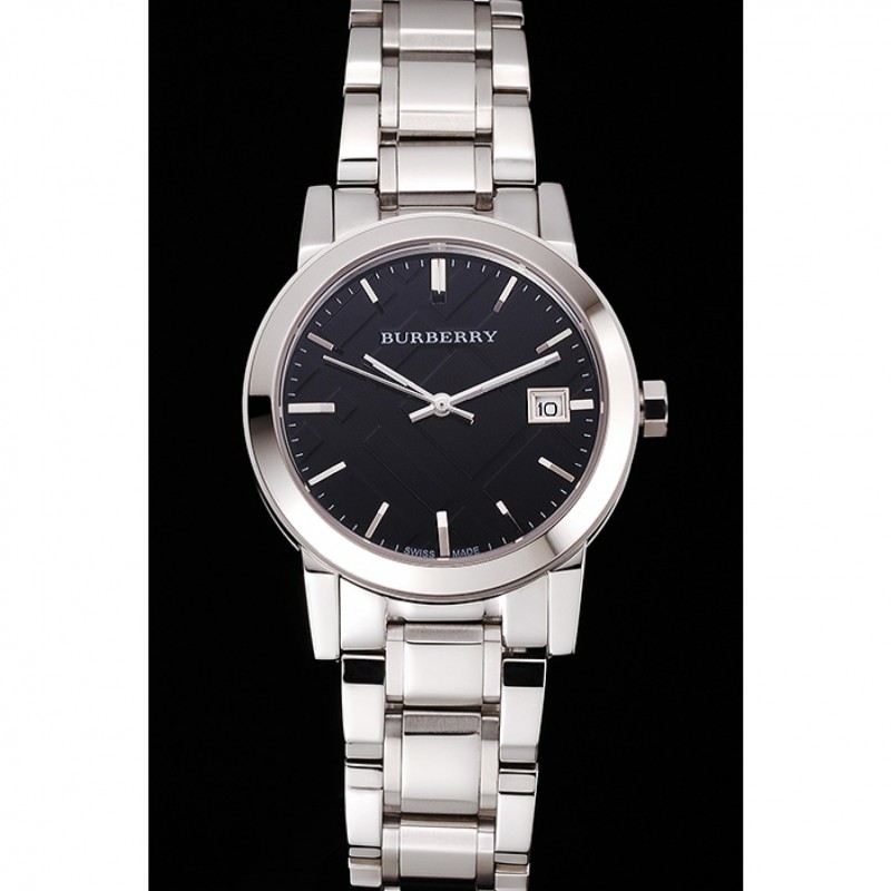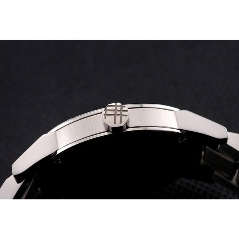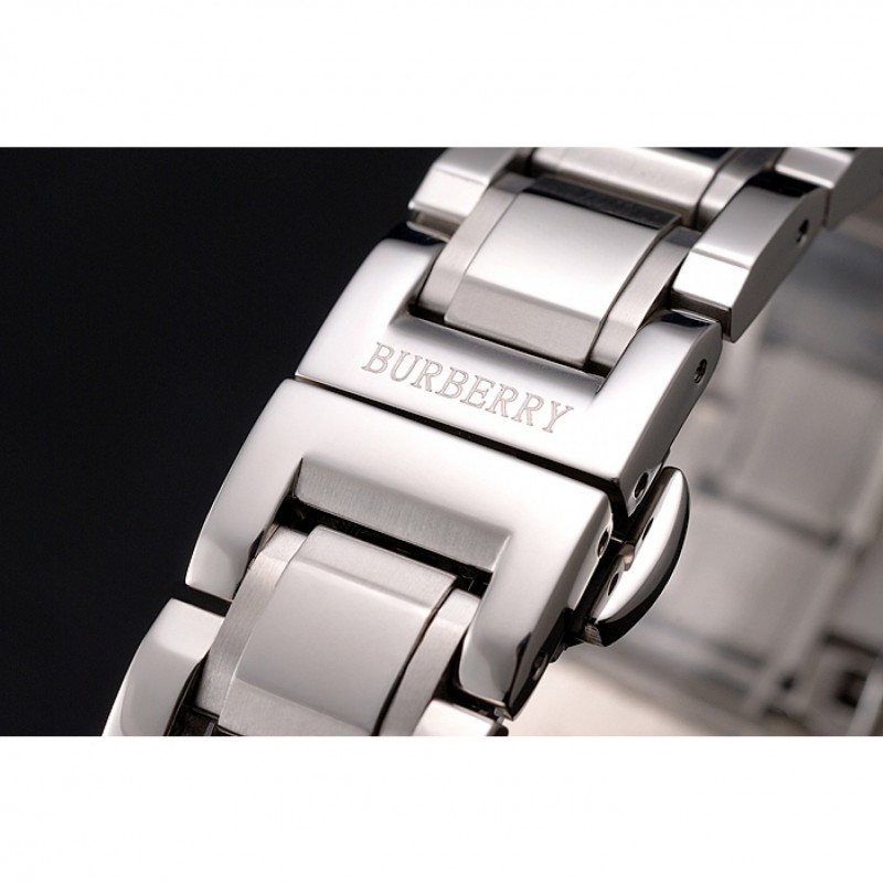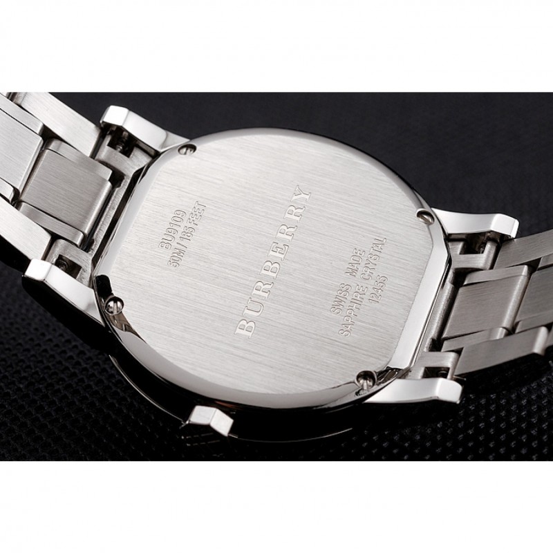 Torna: avvitato verso il basso in acciaio inox lucidato indietro con Burberry iscrizione