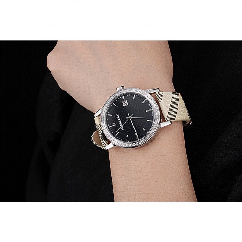 Torna: in acciaio inox spazzolato avvitato indietro con Burberry iscrizione
