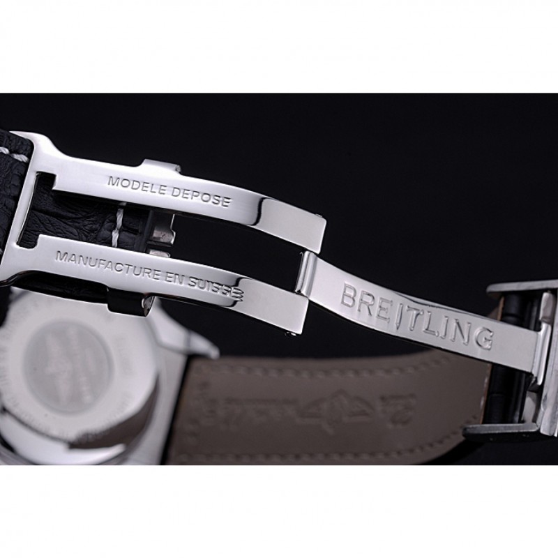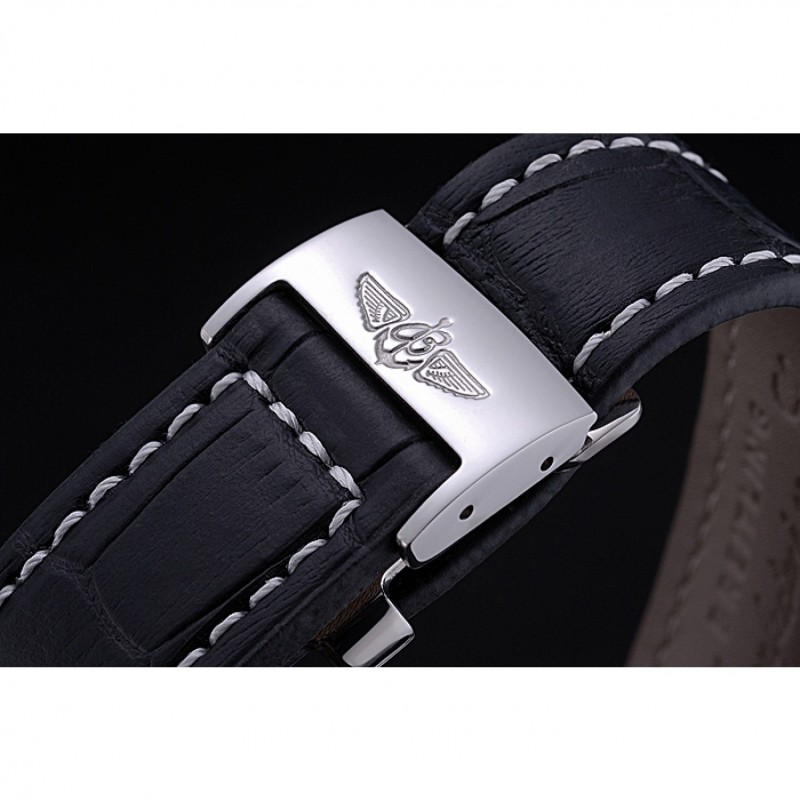 braccialetto: Cuir vero e proprio e il logo di calore in rilievo cinturino in pelle di coccodrillo nero con il bianco cuciture filo e Breitling logo inciso in acciaio inox lucido fold-in chiusura
