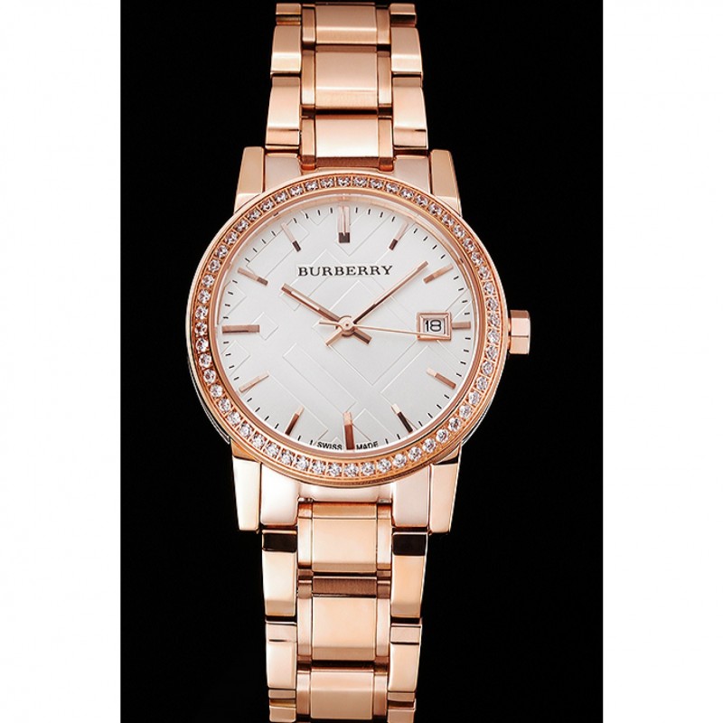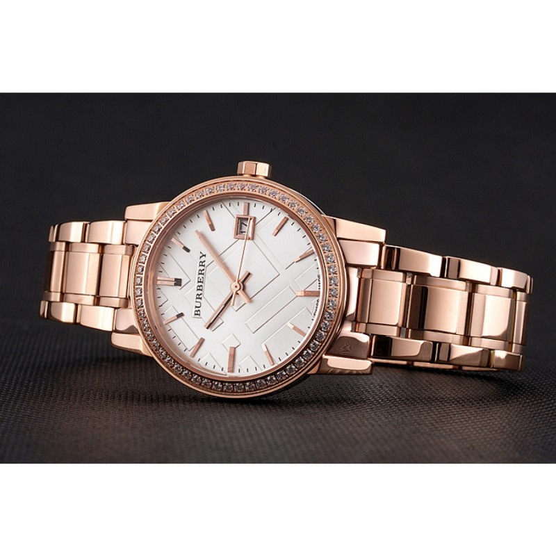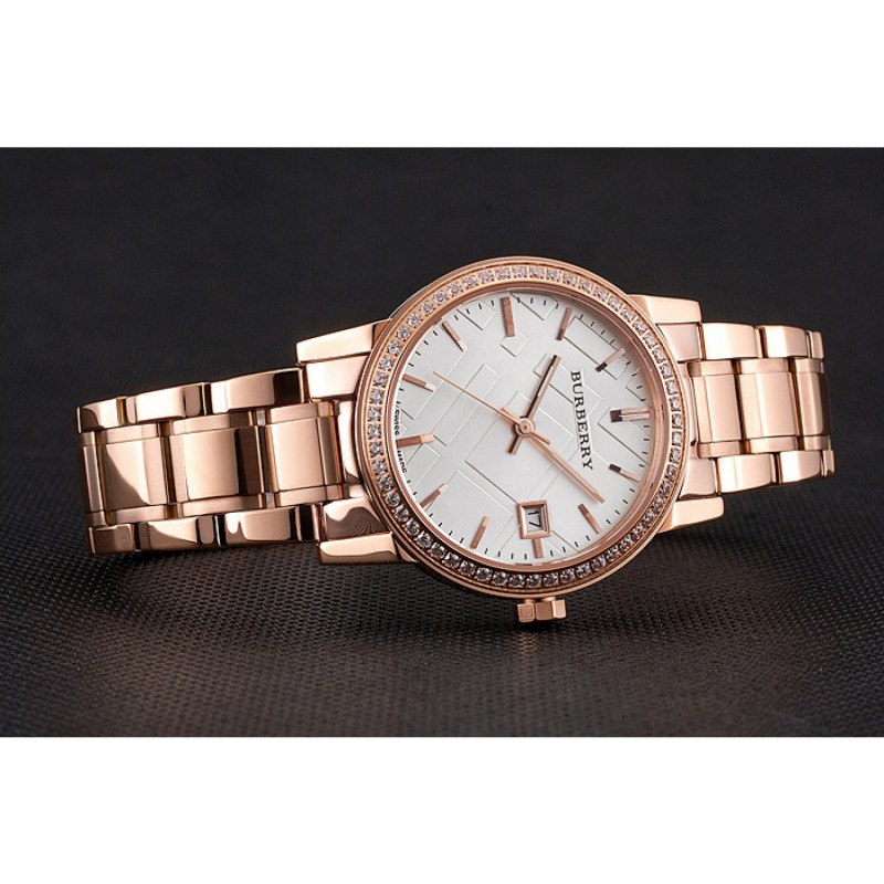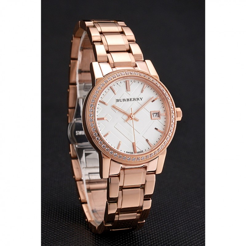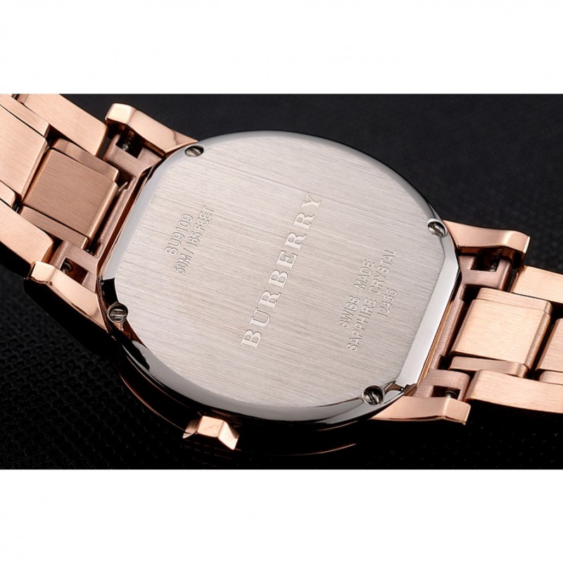 Torna: avvitato verso il basso in acciaio inox lucidato indietro con Burberry iscrizione