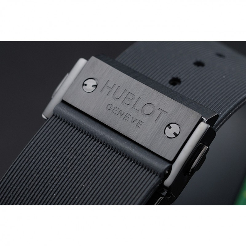 braccialetto: calore goffrato logo e cinturino in gomma nera Hublot Geneve con Hublot Geneve incisa fold-over ione-placcato catenaccio del gancio push-rilascio