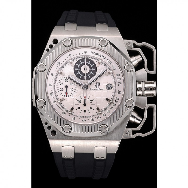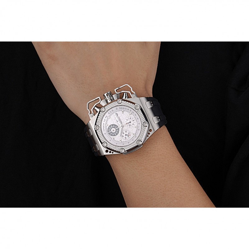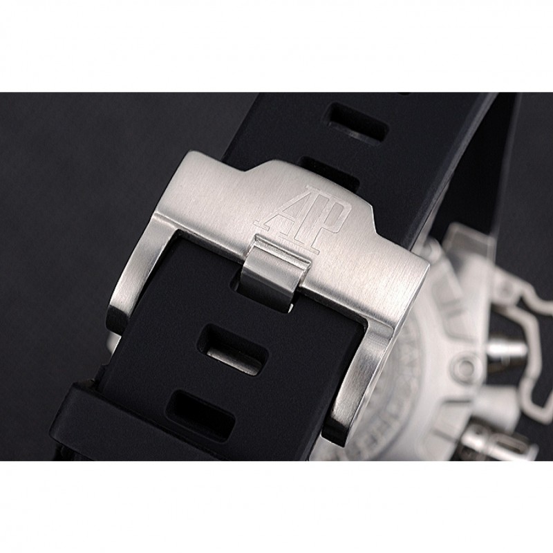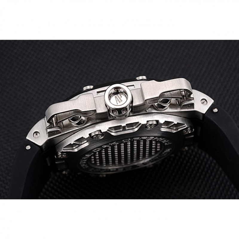 Bracciale: cinturino in caucciù nero calore Royal Oak Offshore in rilievo con Audemars Piguet logo inciso in acciaio inox spazzolato cinturino gancio-fibbia
