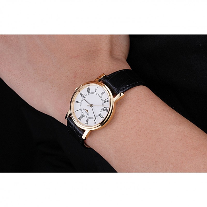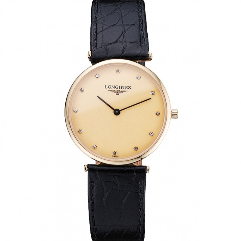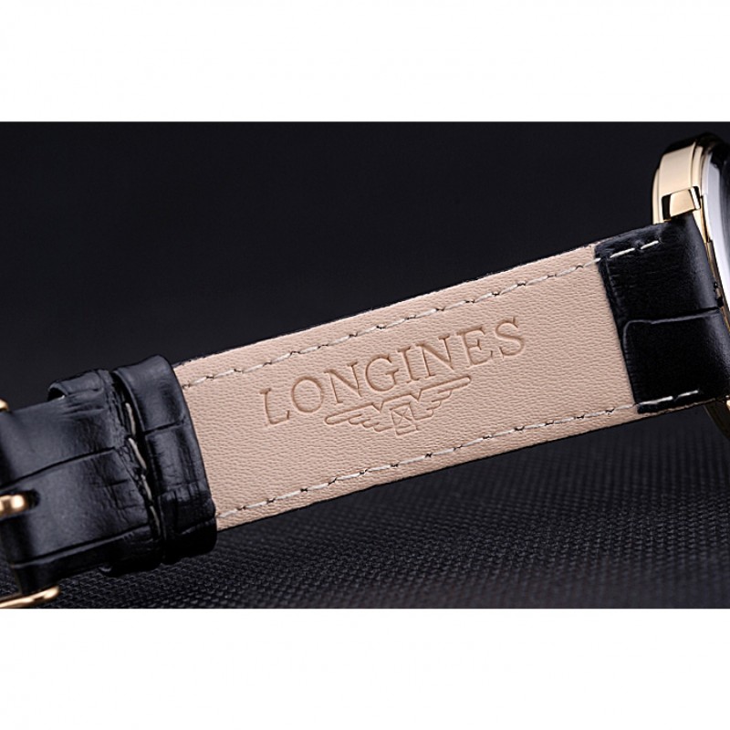 Bracciale: cinturino in pelle di coccodrillo nero Longines e il logo di calore in rilievo con logo inciso oro giallo 18k placcato cinghia gancio-fibbia