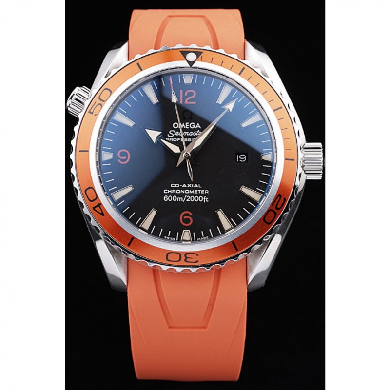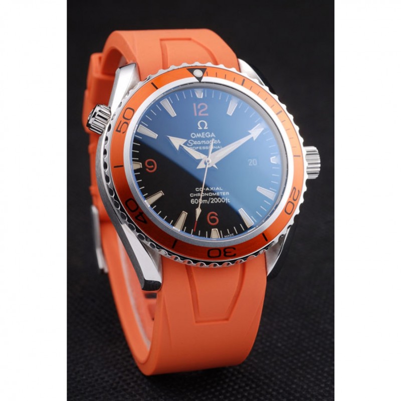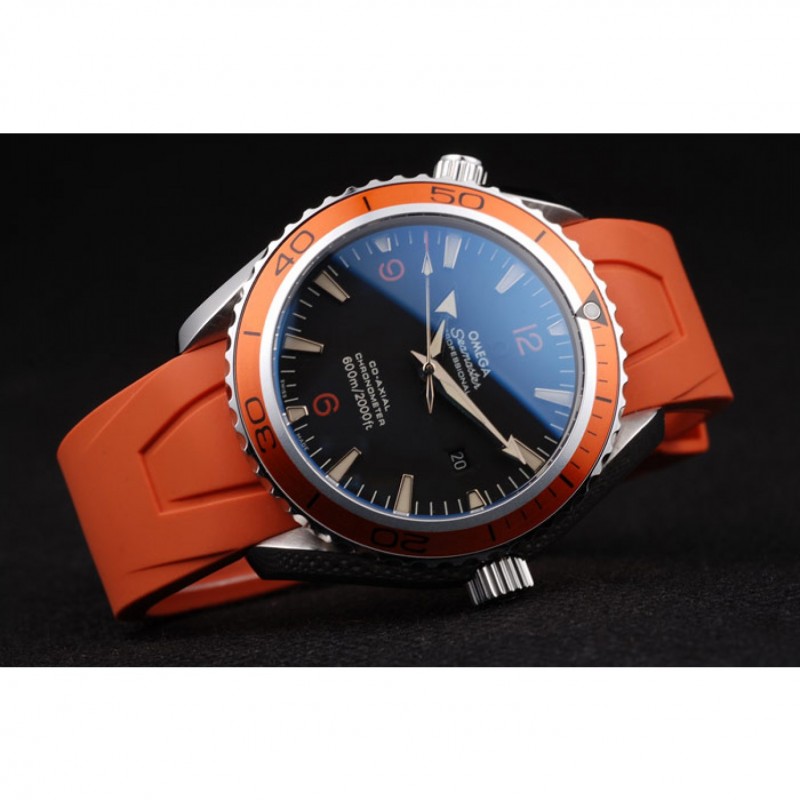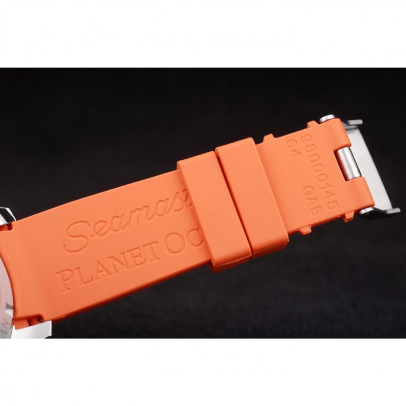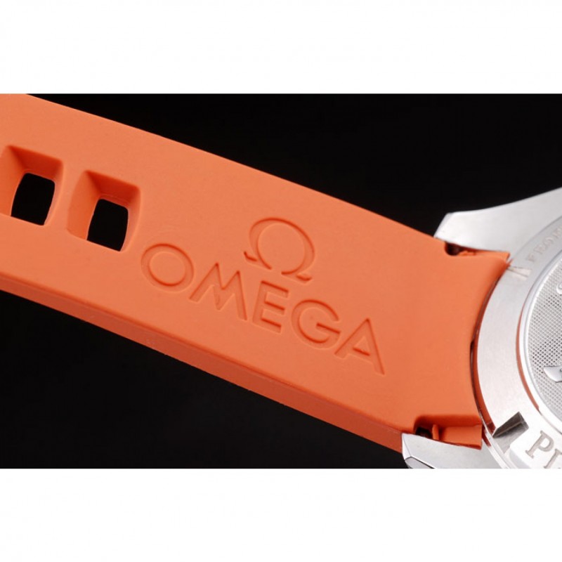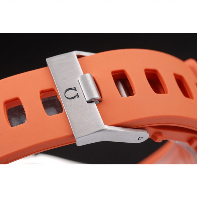 Bracciale: cinturino in gomma arancione con Omega timbro e acciaio inox satinato chiusura del gancio-fibbia con Omega logo sulla parte superiore