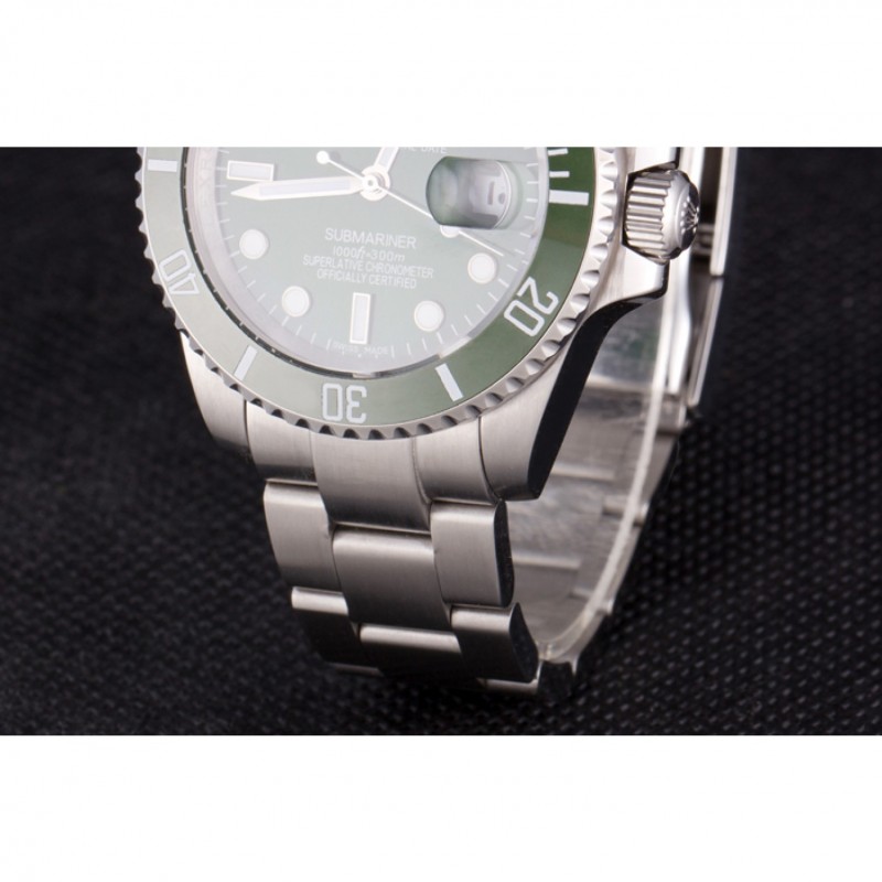 Torna: push in acciaio inox indietro con adesivo verde Rolex e marcature