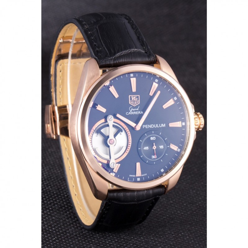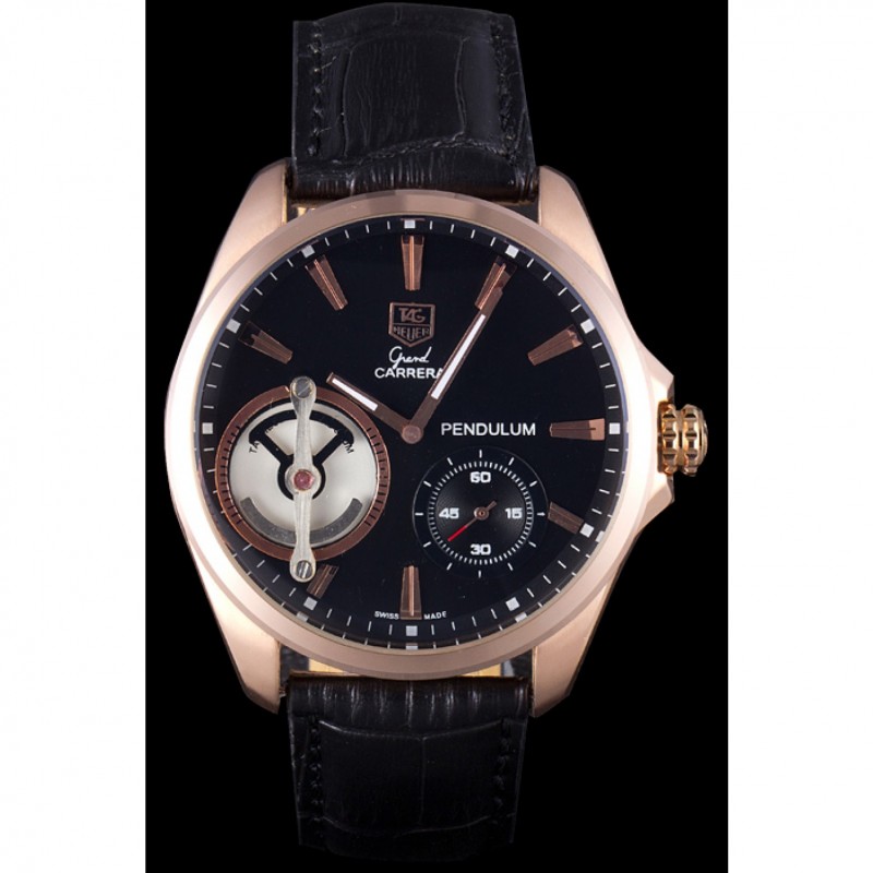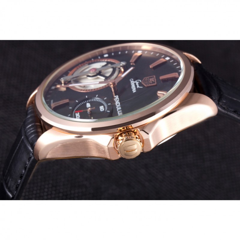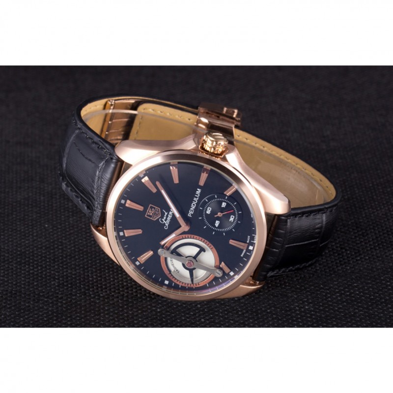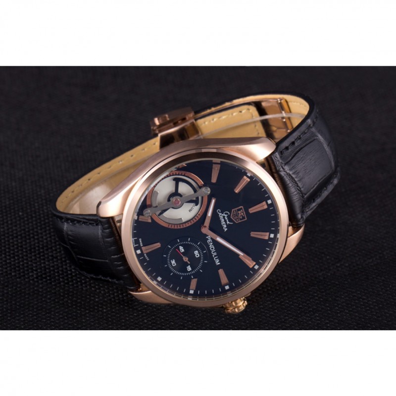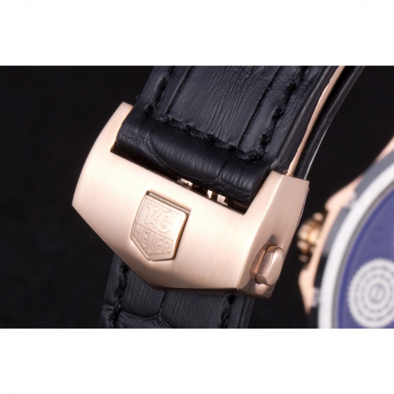 Bracciale: calore Tag impresso Heuer cinturino in pelle di coccodrillo nera con 18k oro rosa placcato fold-in chiusura con funzione di rilascio di spinta