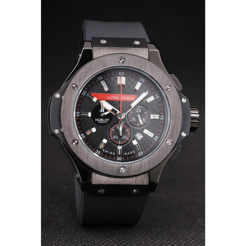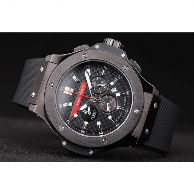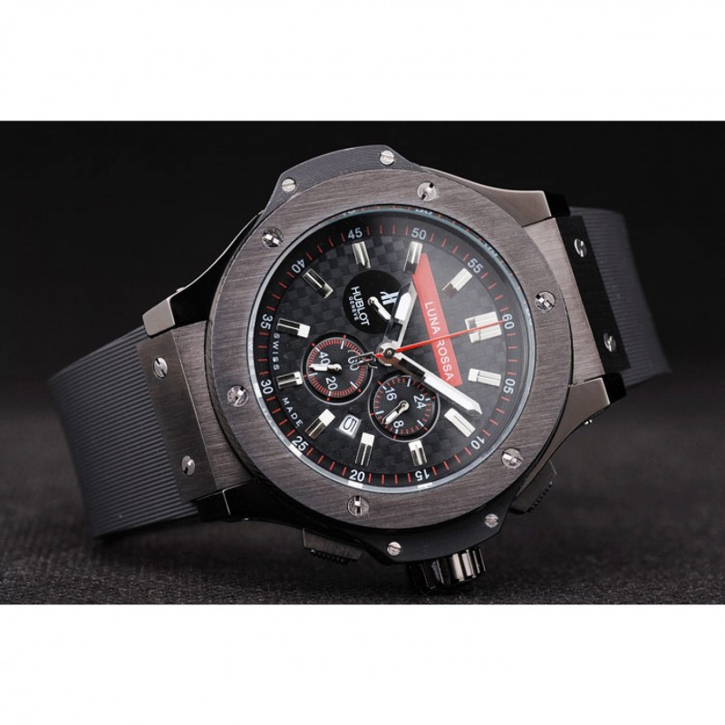 braccialetto: Tessuto elastico nero con gancio chiusura a pulsante ione placcato, calore impresso incisione LUNA ROSSA e iscrizioni Hublot