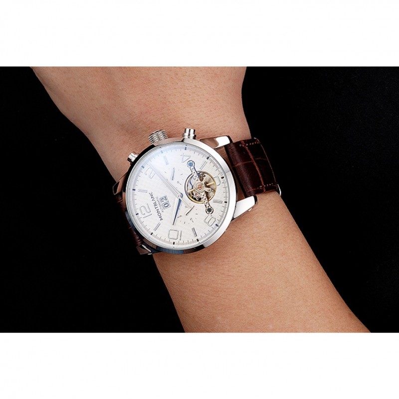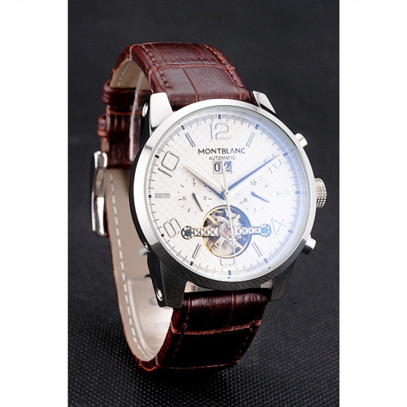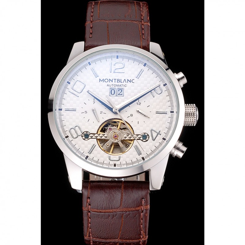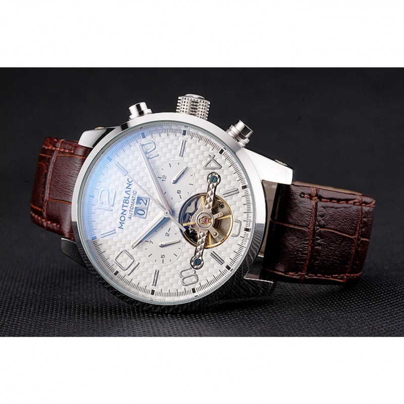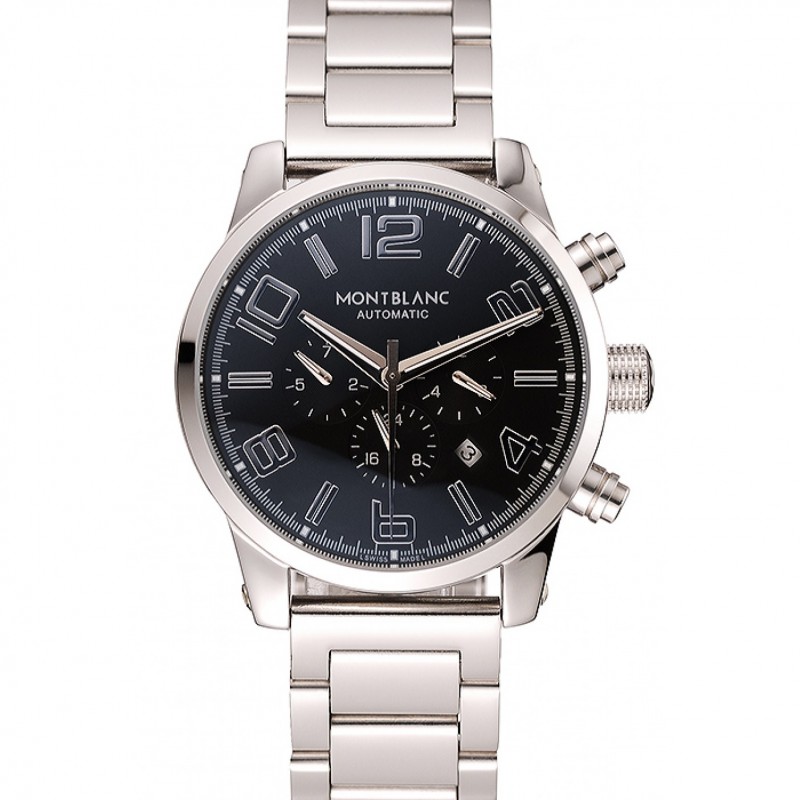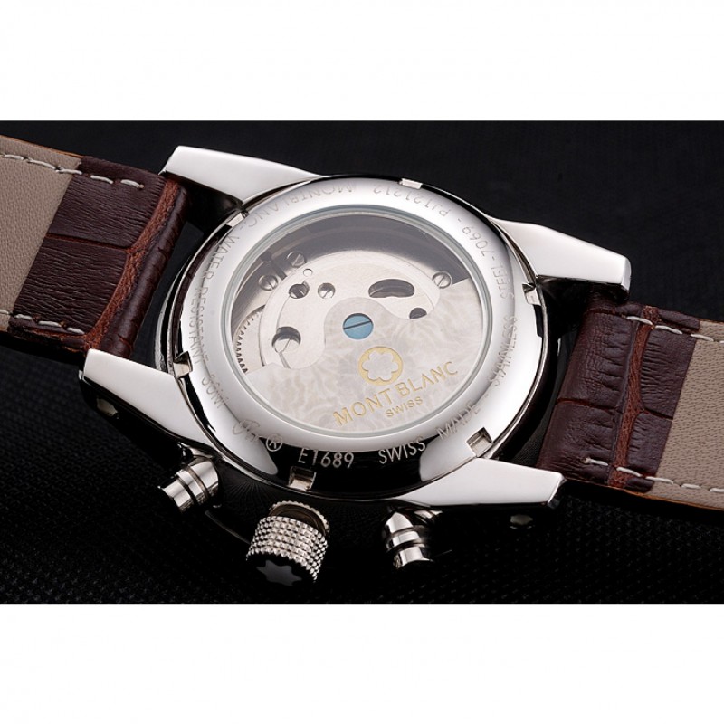 corona: lucido corona intaglio in acciaio inox con logo Montblanc e due lucido spinta in acciaio inox corone dei pulsanti su entrambi i lati di esso