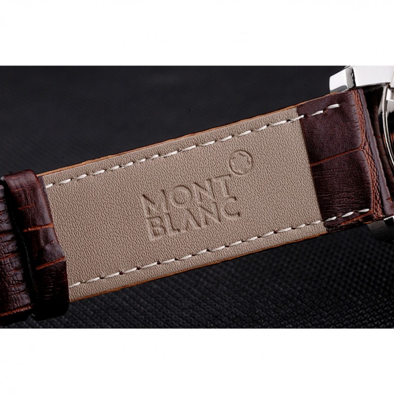 Bracciale: cinturino in pelle di coccodrillo marrone calore MontBlanc con impresso MontBlanc logo inciso in acciaio inox lucidato chiusura gancio nascosto
