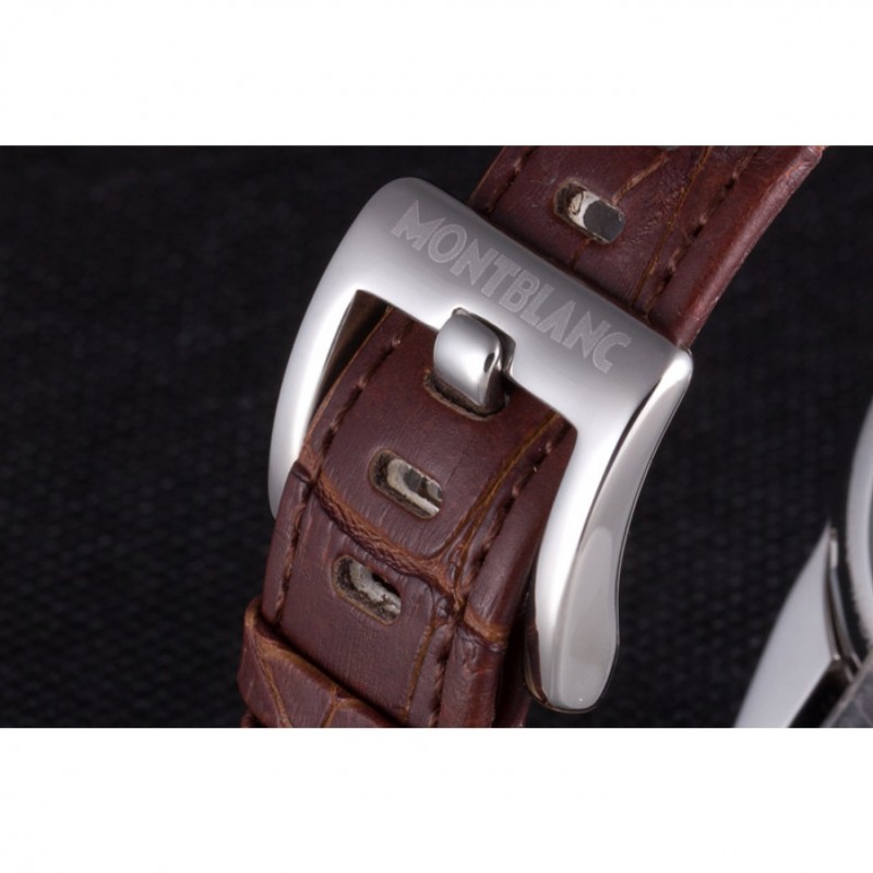 braccialetto: calore MontBlanc impresso cinturino marrone in pelle di coccodrillo con MontBlanc inscritta in acciaio inox hook-fibbia chiusura lucidato