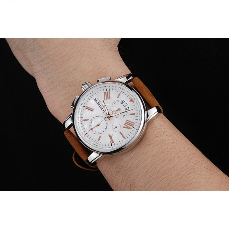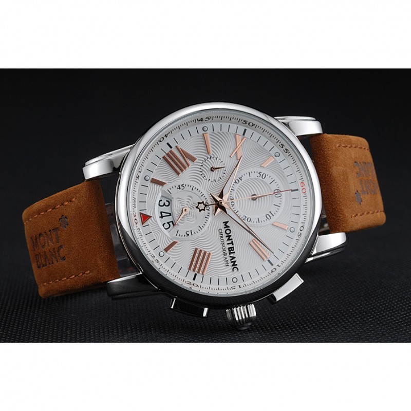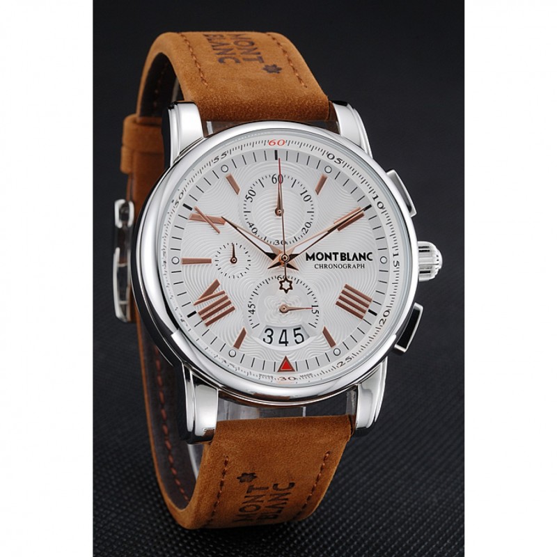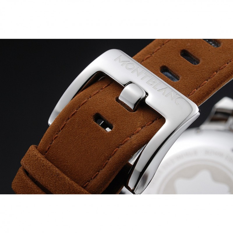 braccialetto: calore Montblanc goffrato cinturino marrone pelle scamosciata, Montblanc inciso inossidabile catenaccio gancio inarcamento lucidato