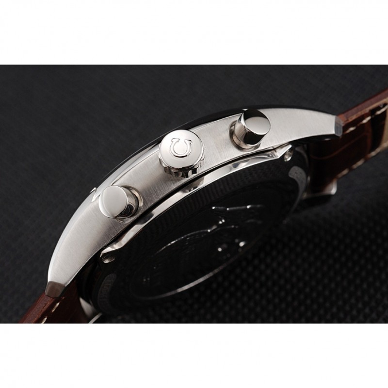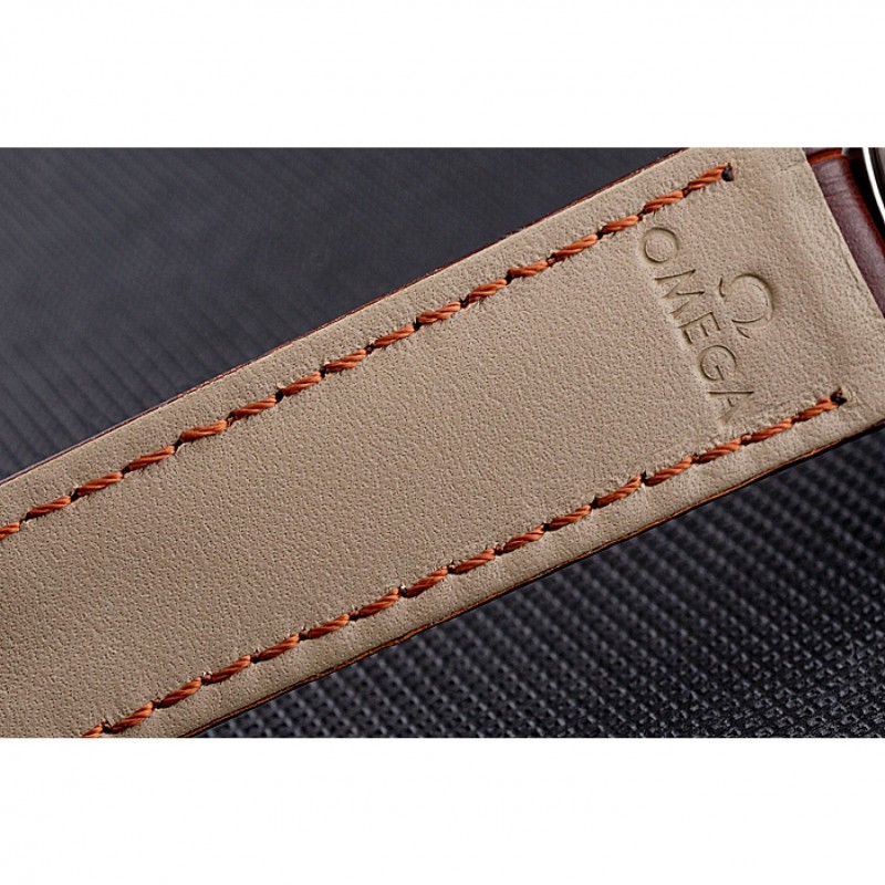 Bracciale: Omega, logo e il codice prodotto di calore impresso cinturino in pelle di coccodrillo marrone con logo inciso fibbia in acciaio inox gancio di push-rilascio lucido