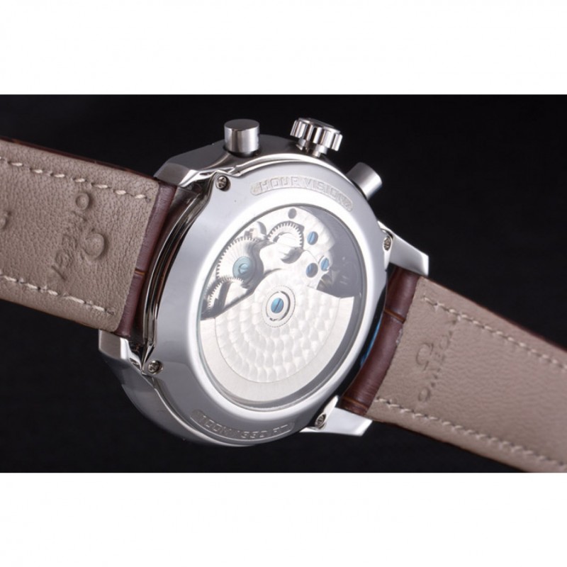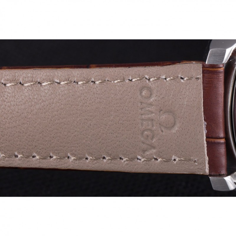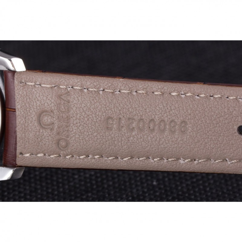 Bracciale: Omega, il logo e il codice prodotto di calore impresso cinturino in pelle di coccodrillo marrone con logo inciso fibbia in acciaio inox gancio di push-rilascio lucido